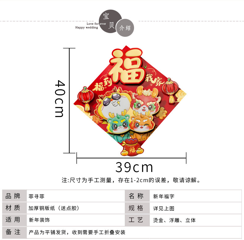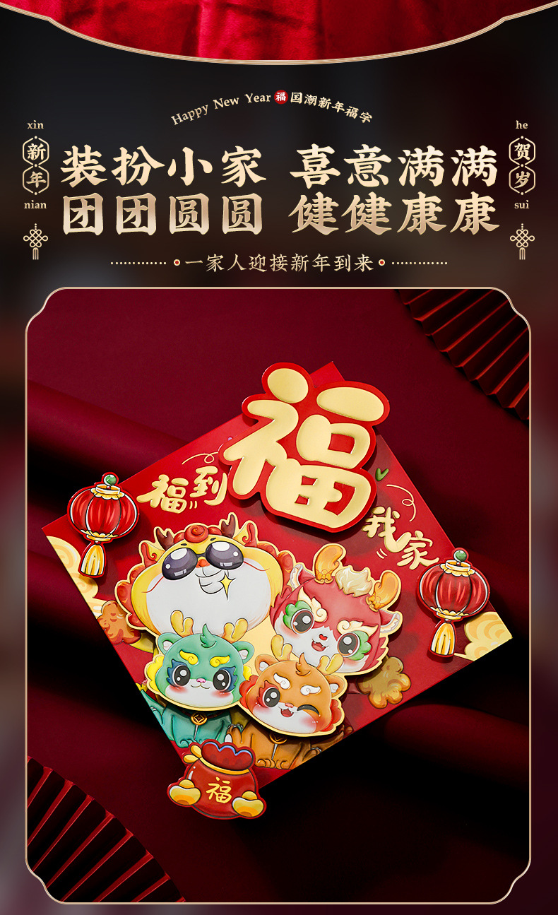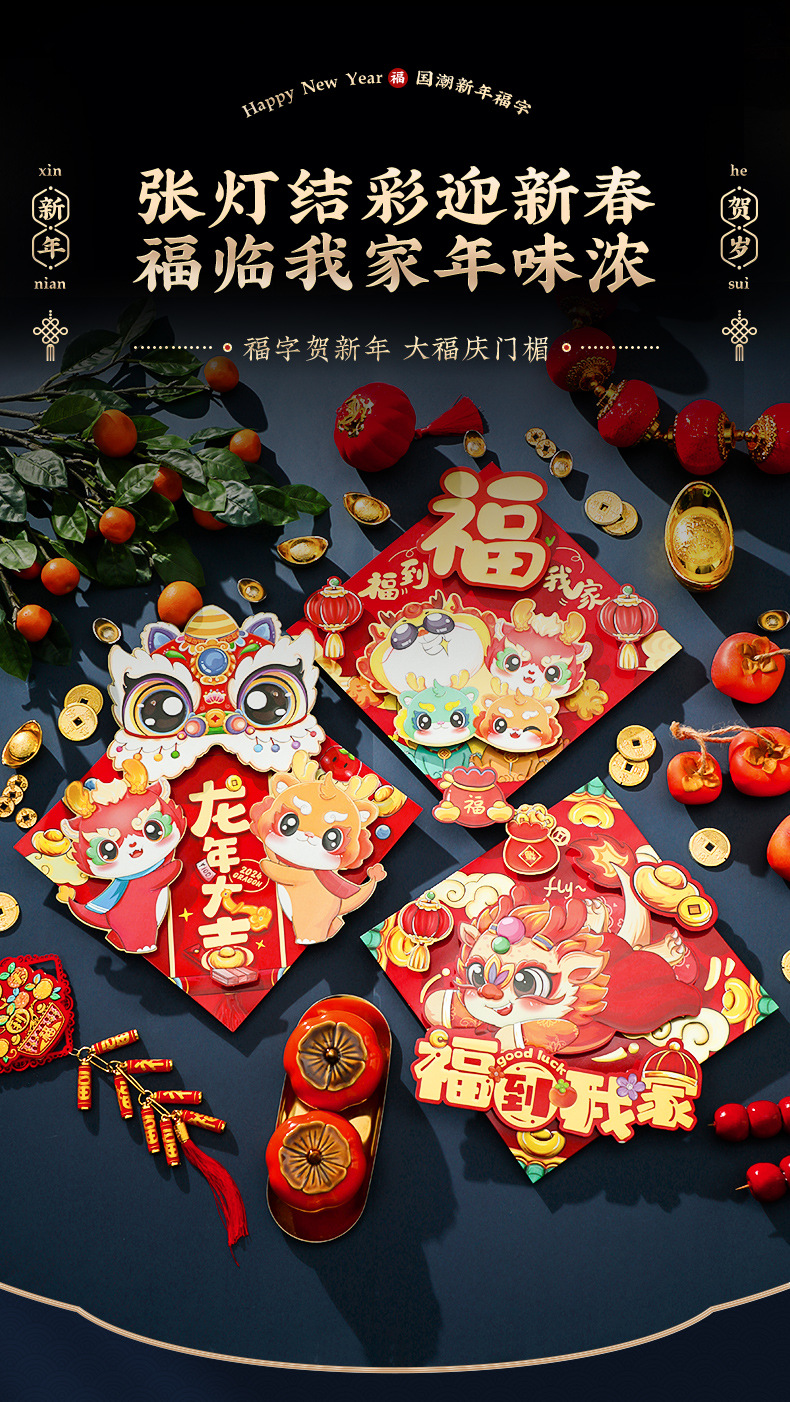 2024龙年新年新款立体福字对联春节家用入户大门贴纸过年布置装饰