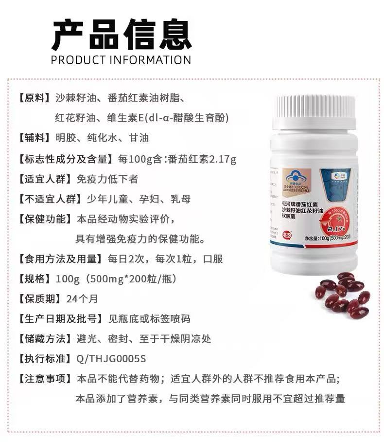 中粮屯河番茄红素软胶囊 新疆番茄产区 天然番茄红素复配沙棘籽油 实惠装 500mg/粒*200粒