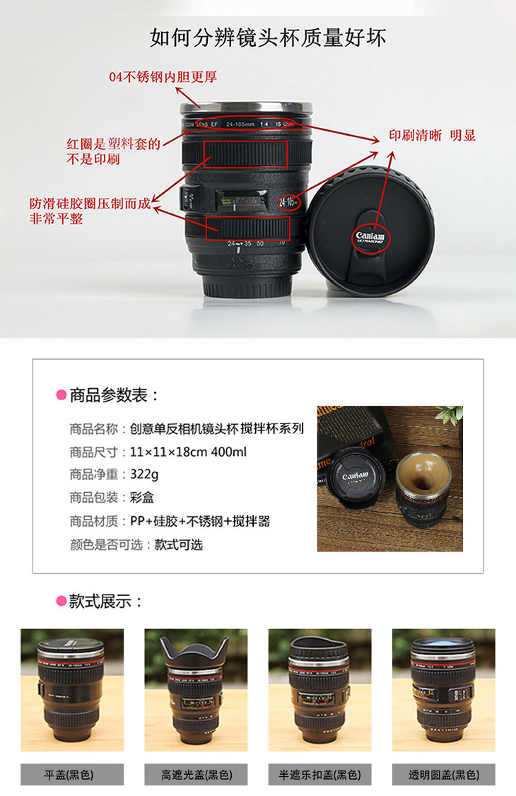 【为思礼】镜头搅拌杯 单反相机镜头杯 佳能款 咖啡杯 创意杯 时尚潮品 创意礼物