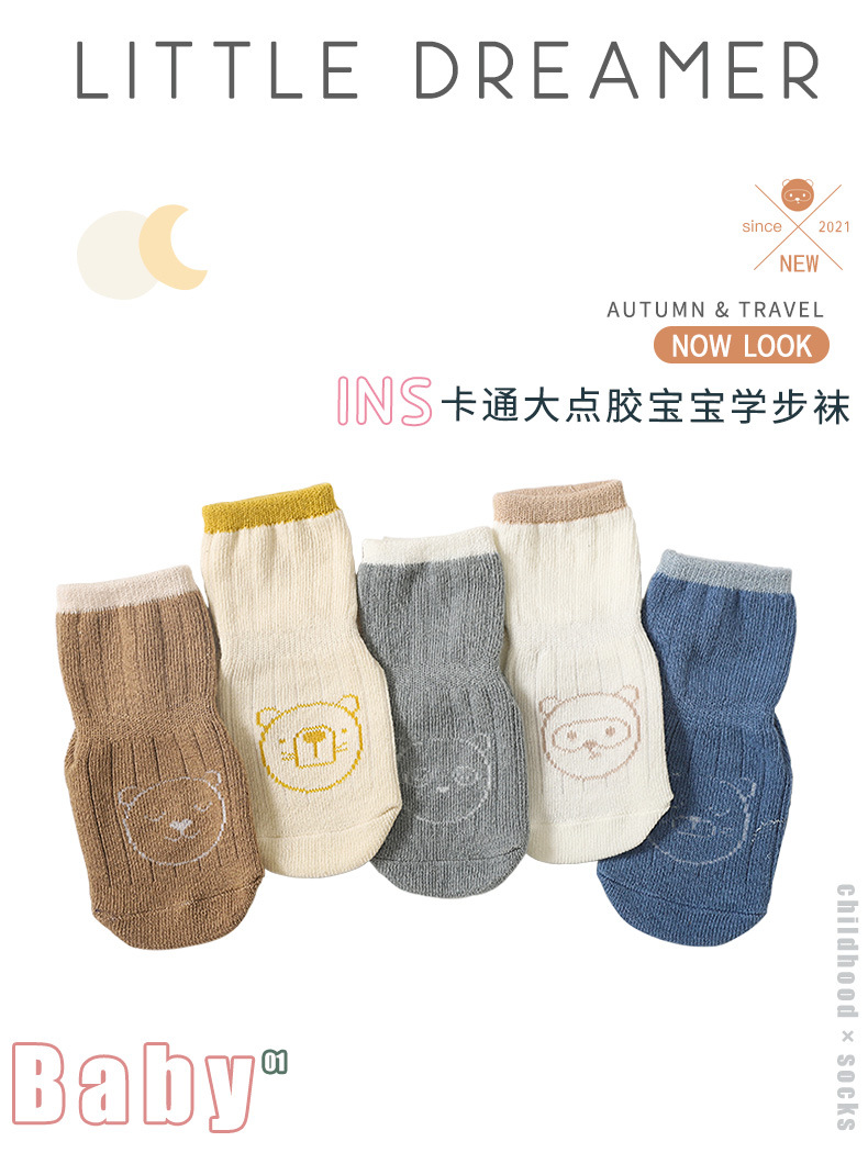 【限时价 3双装】a类秋冬新款宝宝地板袜卡通可爱婴儿学步袜卡通点胶防滑儿童袜子