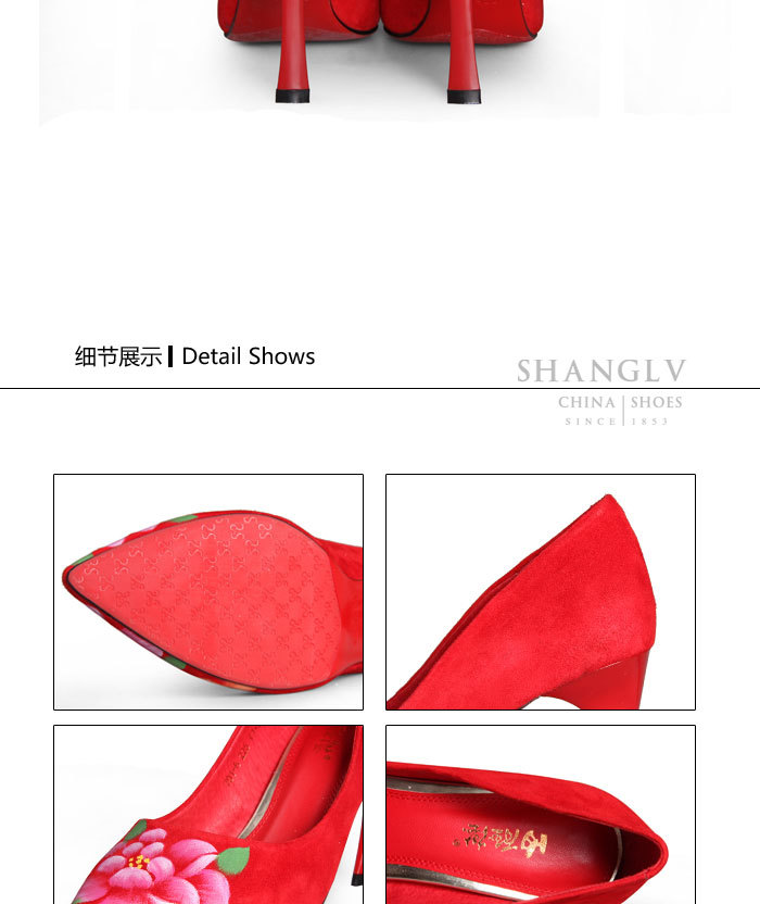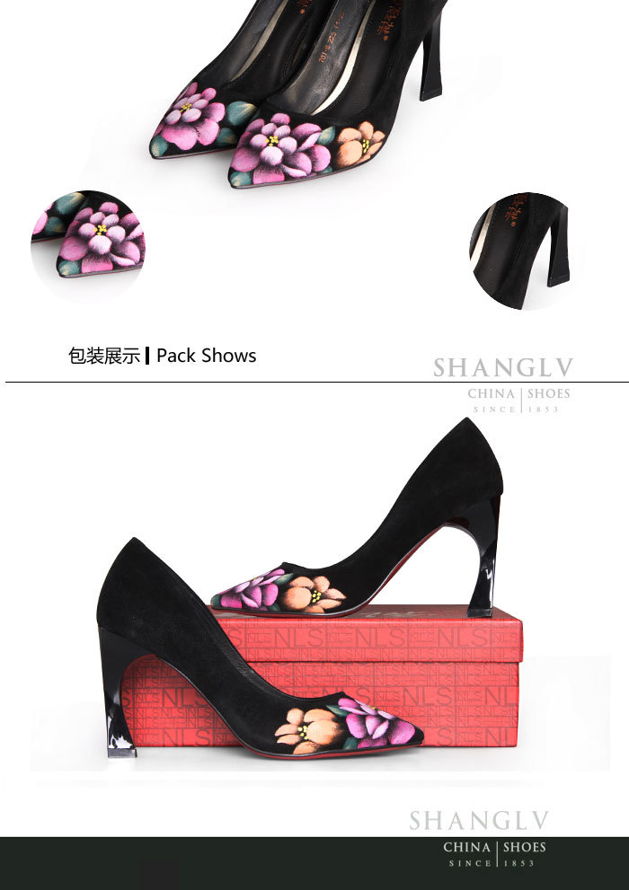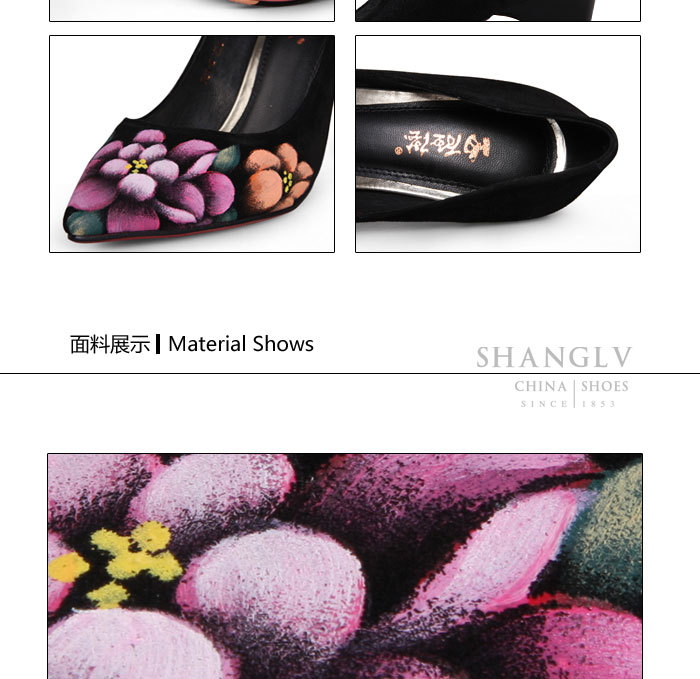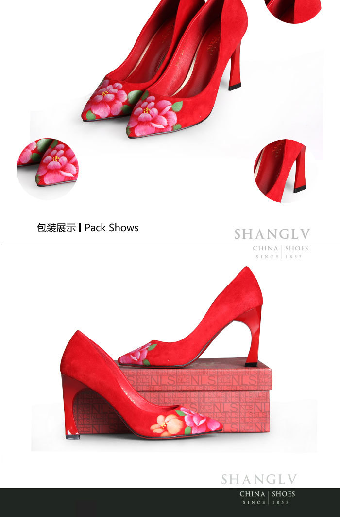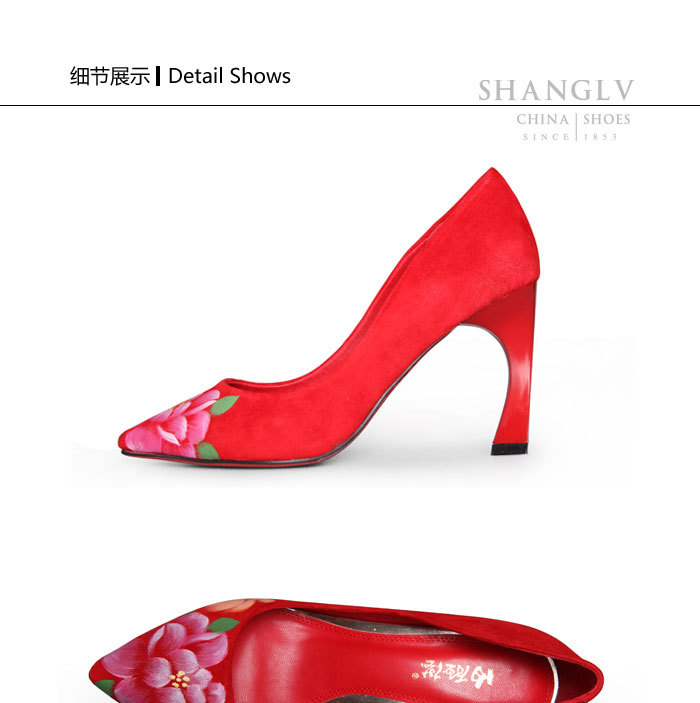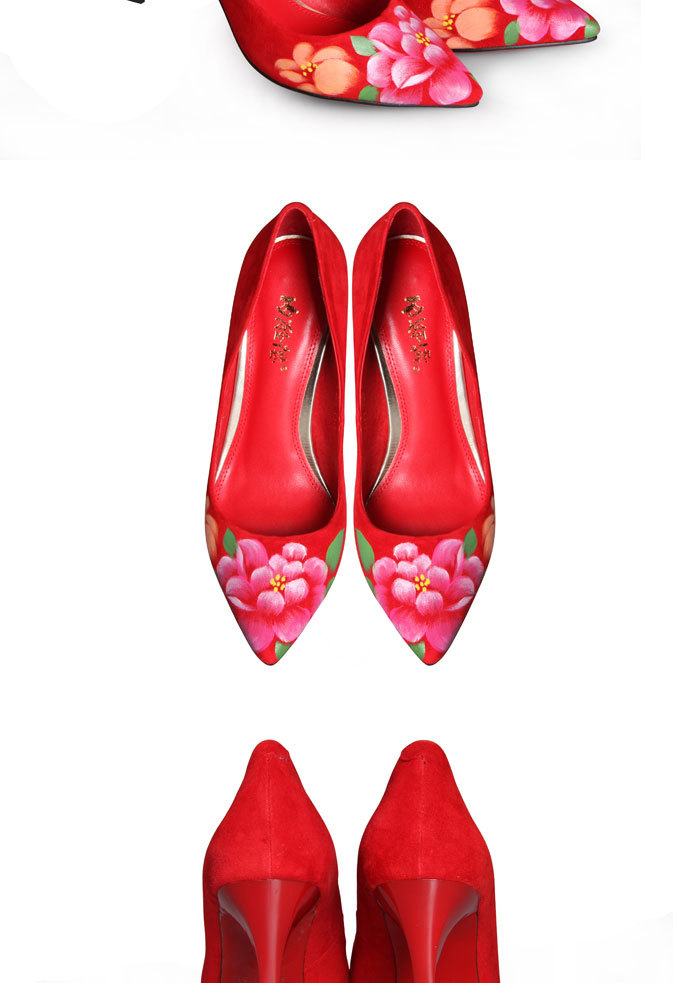 内联升女鞋单鞋高跟时尚彩绘高跟婚鞋4653C