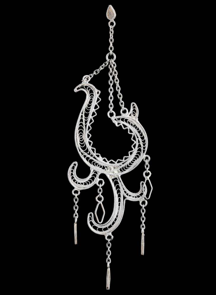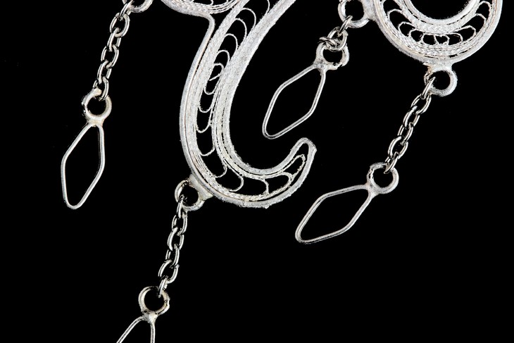 我从来没有见过一种银饰能透出如此的优雅和古典。我从来没有见过一种首饰能把银处理到如此细腻的程度。细致处如丝织。难以想象,这是多么灵巧的一双手。