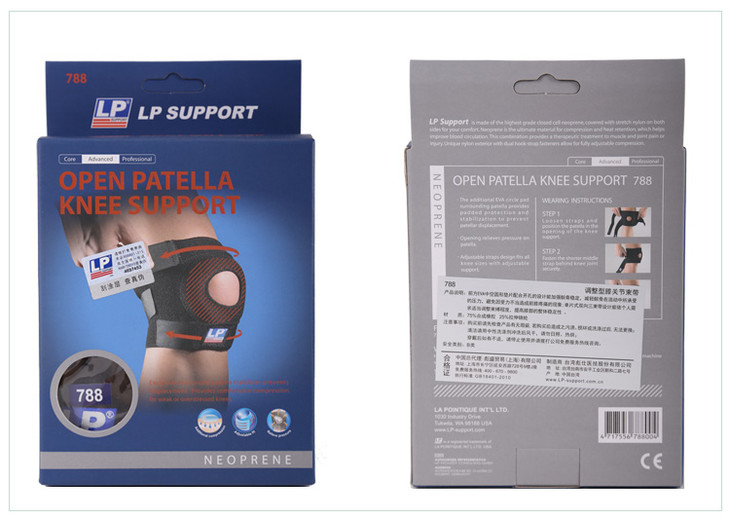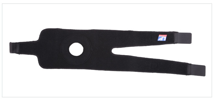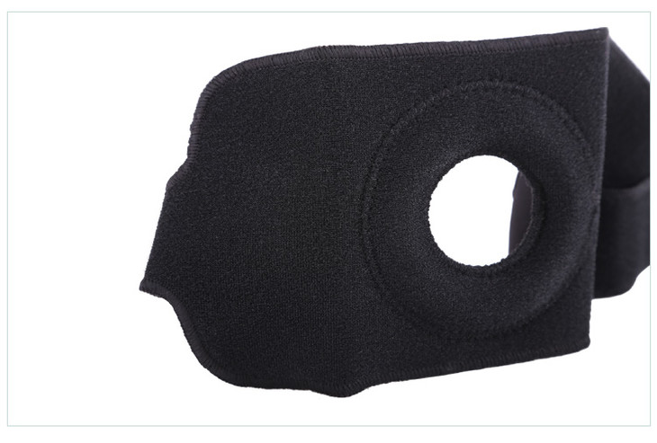前方EVA中空圆形垫片配合开孔的设计能加强髌骨稳定,减轻髌骨在活动中所承受的压力,避免因受力不当造成前膝疼痛的现象;单片式双向三束带设计能依个人需求适当调整束缚程度,提高膝部的整体稳定性。