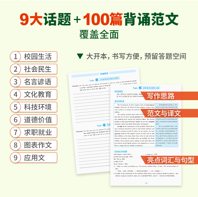 4. 英语六级作文话题全面,范文易于模仿背诵;