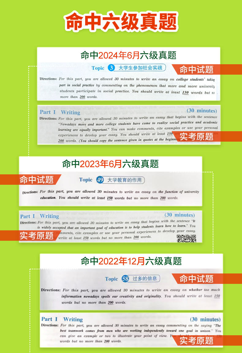 1. 参照近年六级真题作文命题,把握命题趋势,备考针对性强;