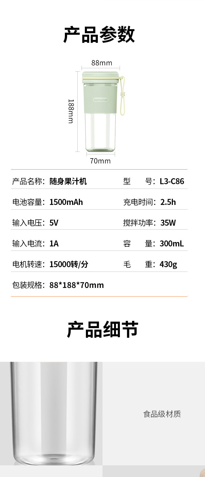 【随身果汁机】Joyoung/九阳L3-C86充电式便携果汁机榨汁杯