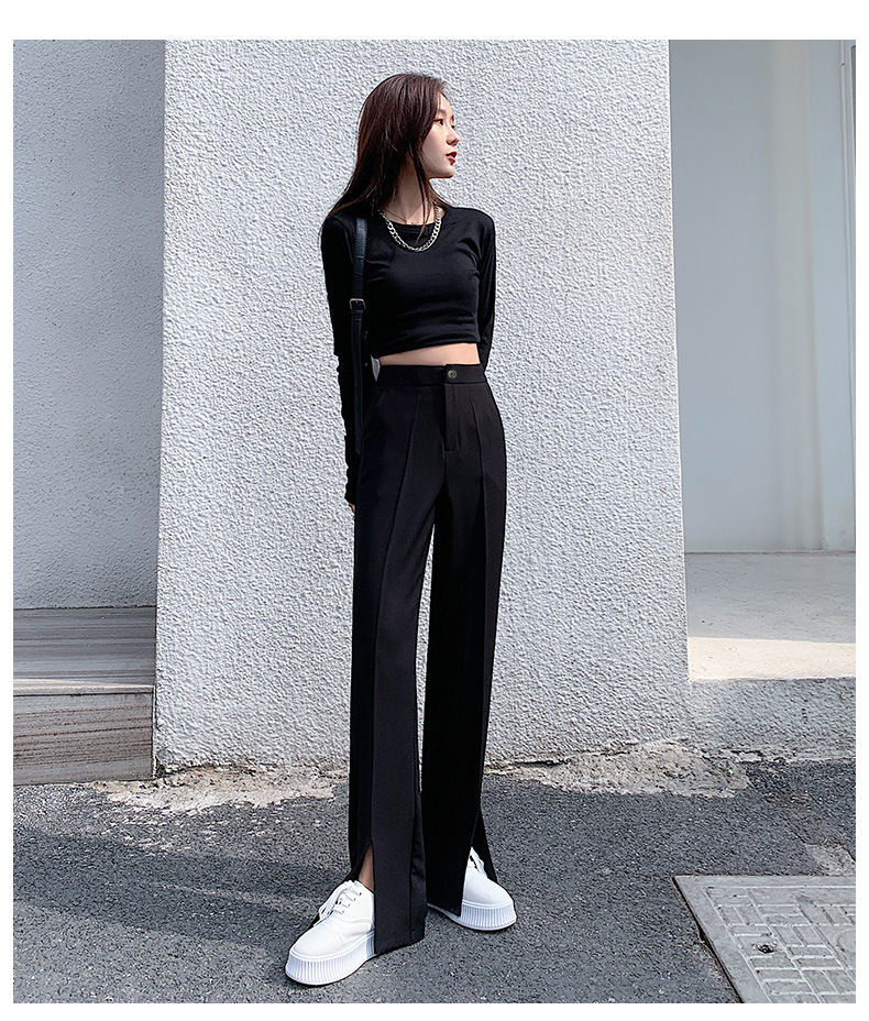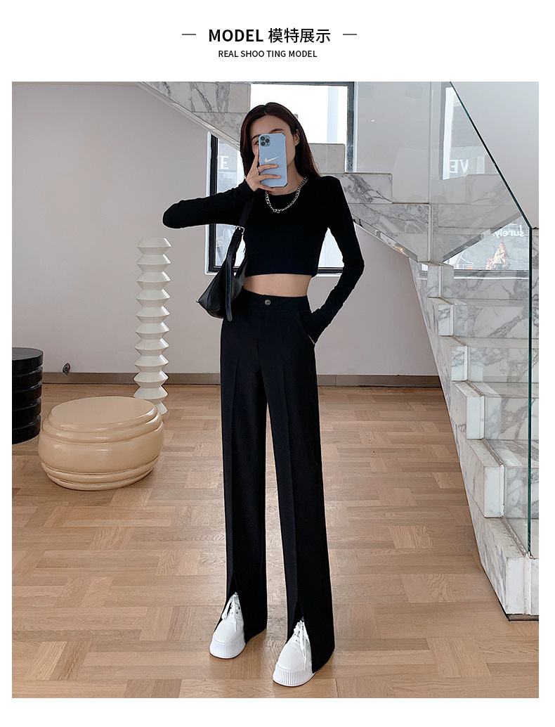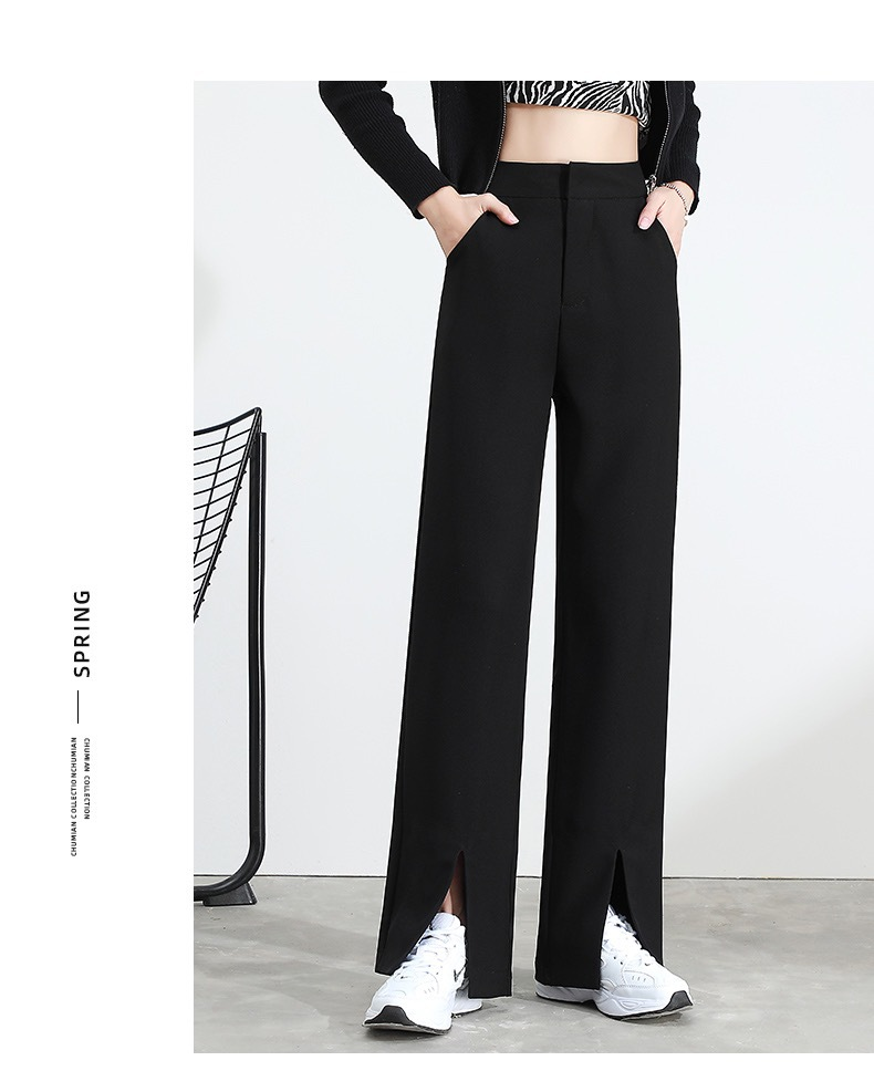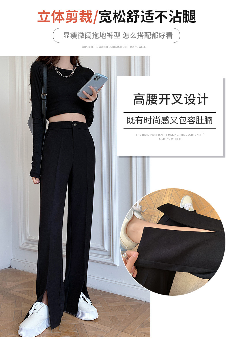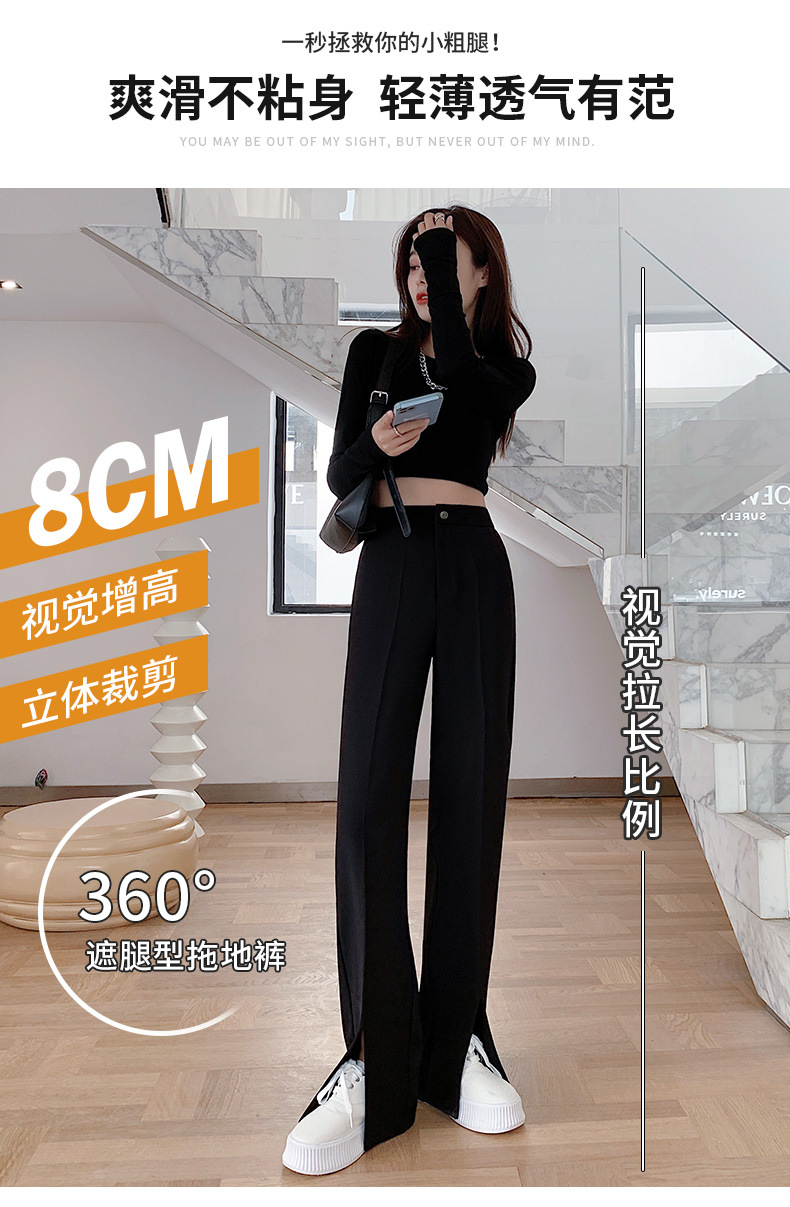 「“大象腿”福音」轻松遮肉 适合各种腿型!2024爆款新春西装裤 垂感舒适高腰开叉直筒裤 显高显瘦 秒变大长腿 小个子也能穿的显瘦显高神裤