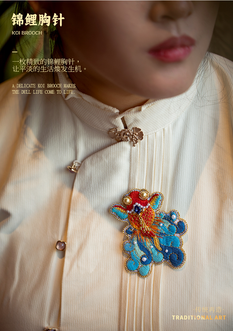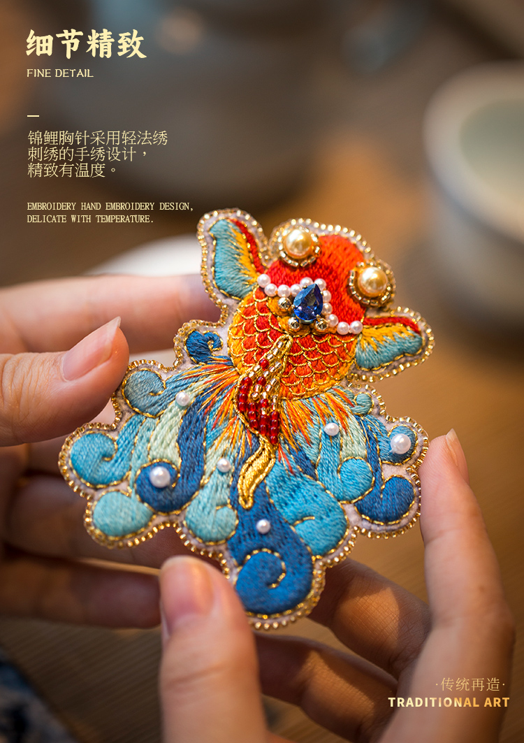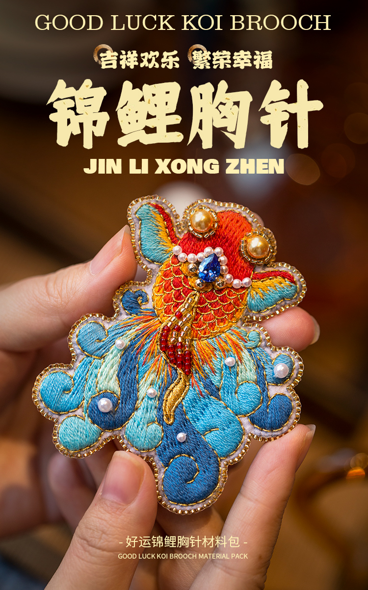 【优雅女人的标志】锦鲤胸针刺绣材料包