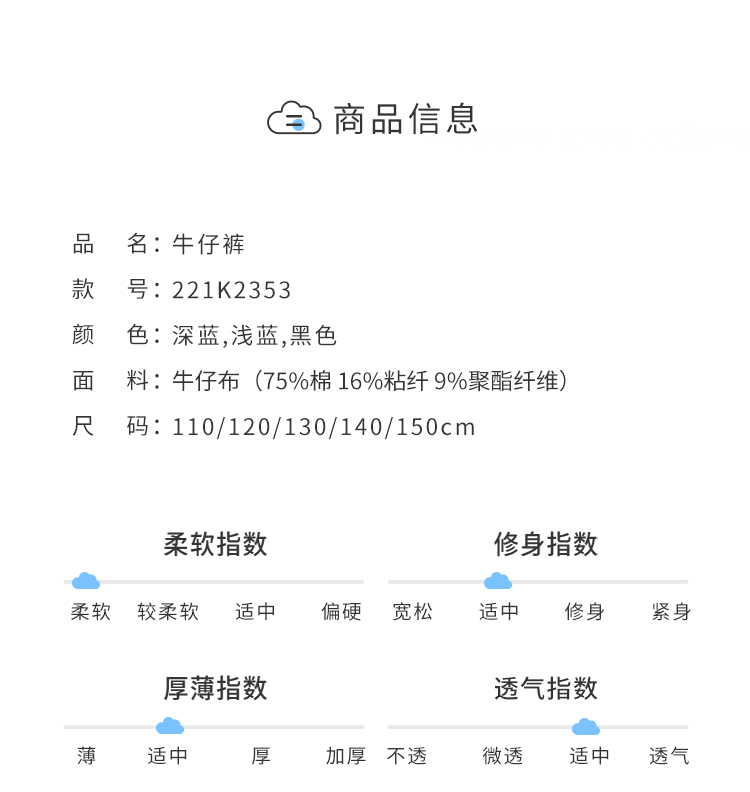 贝贝怡男童牛仔裤长裤春装春秋宝宝单裤潮韩版洋气儿童长裤子221K2353