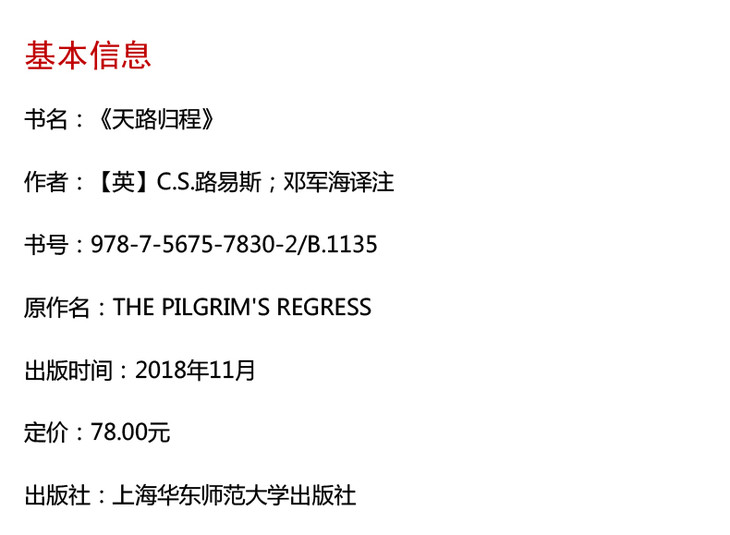 天路归程 C.S.路易斯著作系列 精装 《惊喜之旅》 姊妹篇 寓言体现代思想史