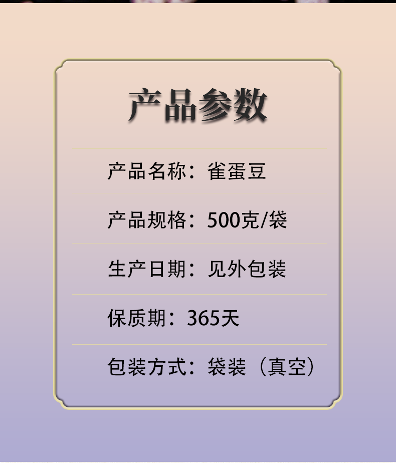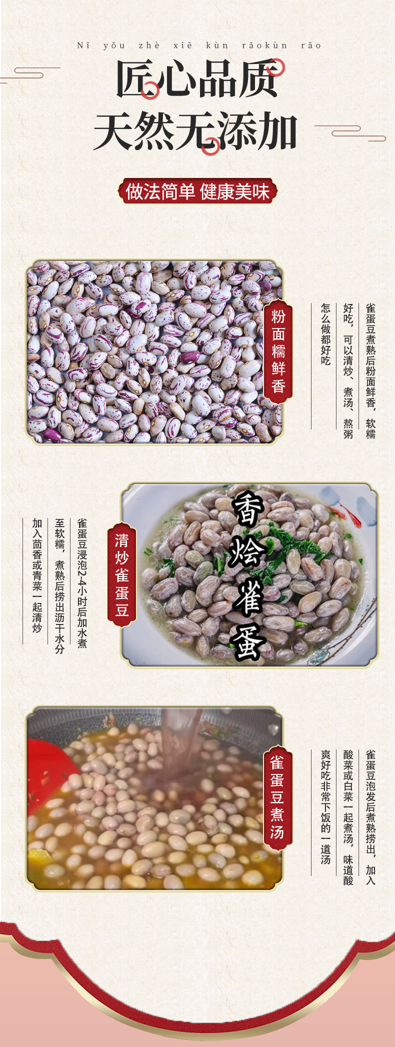 【食品】雀蛋豆云南农家自种新豆子花芸豆花生豆杂粮粥食材500g/袋