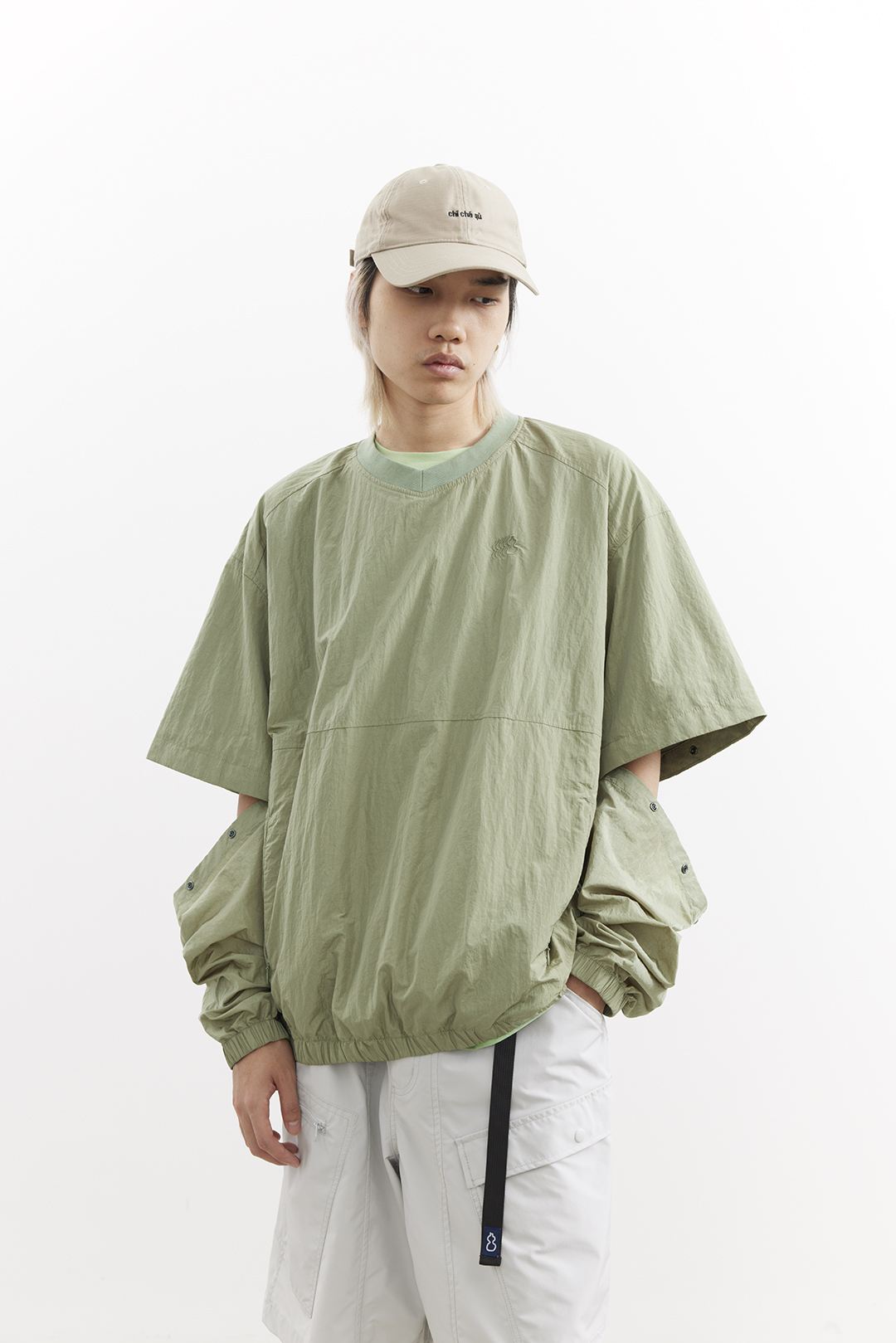 吃茶去chichaqu25户外运动机能拆卸长短袖光泽尼龙套头夹克山系