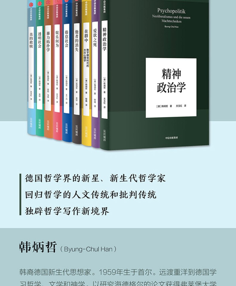 中信出版 | 韩炳哲作品系列(套装共9册)韩炳哲 著 爱欲之死 暴力拓扑学 他者的消失 倦怠社会 透明社会 美的救赎