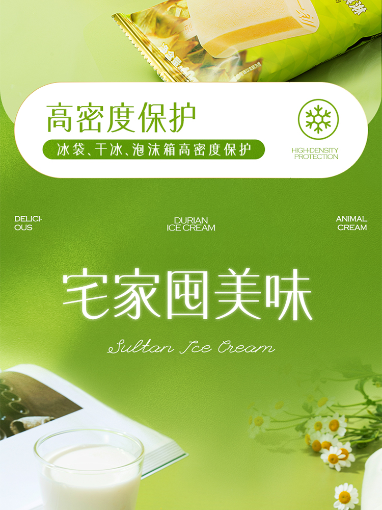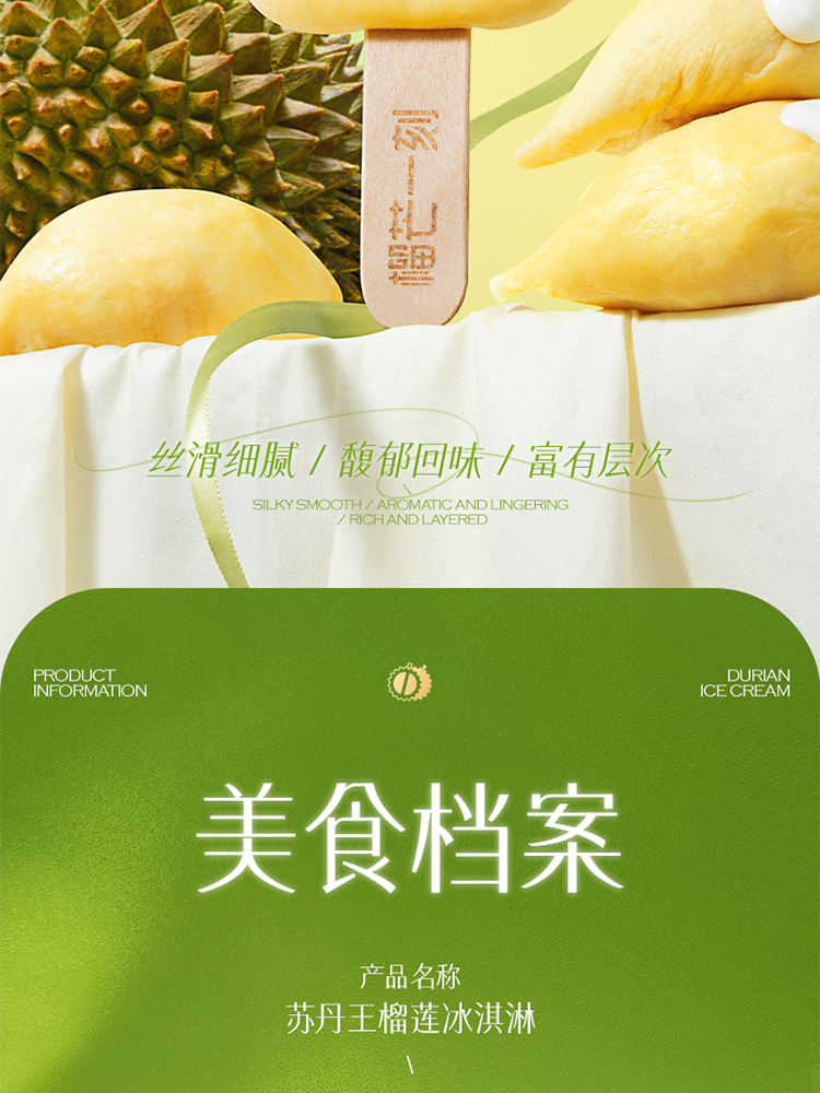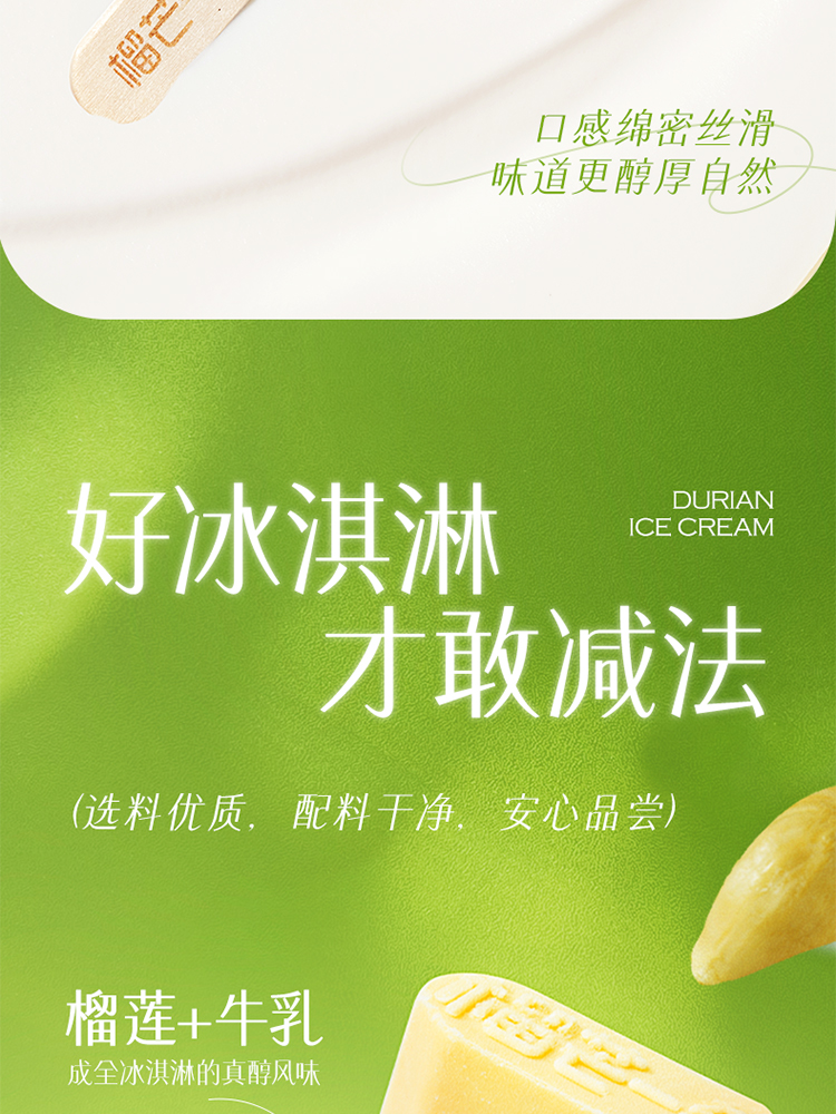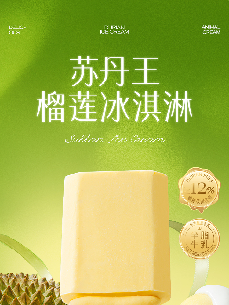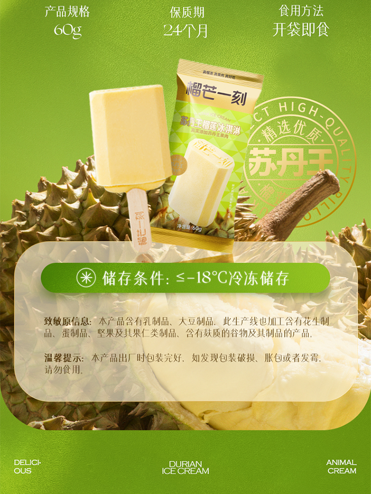 【苏丹王榴莲冰淇淋】60克*10支| 香甜不腻,果香浓郁