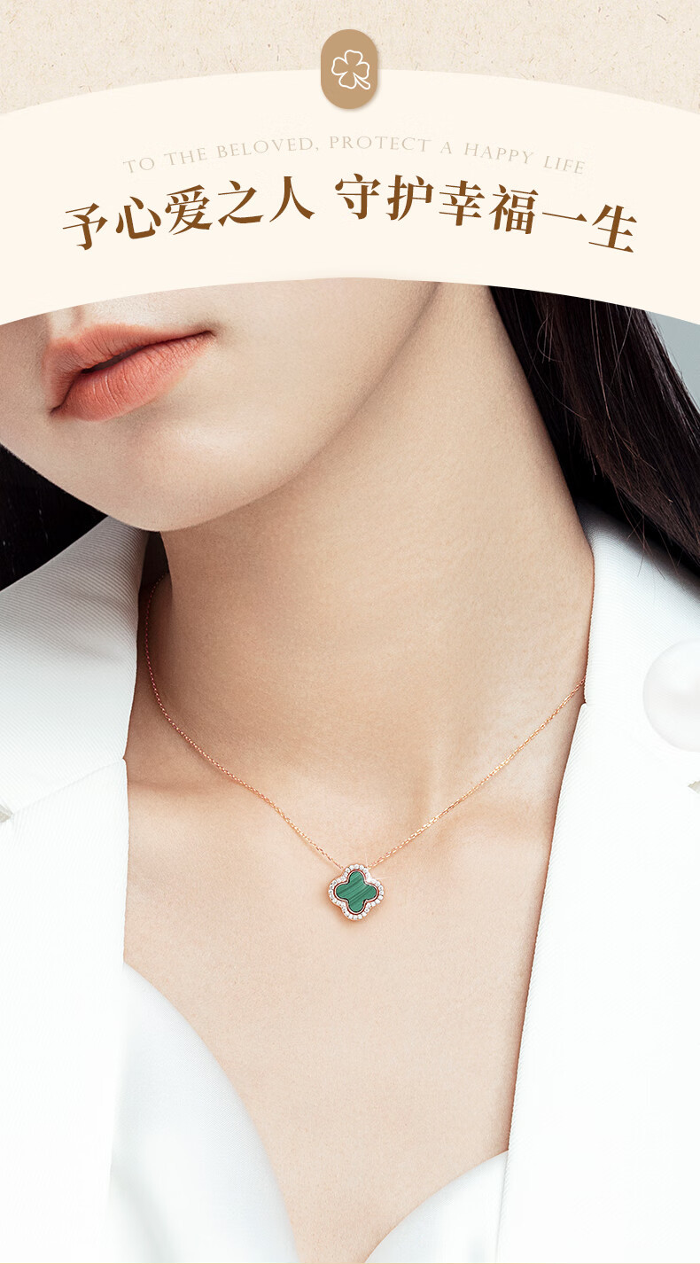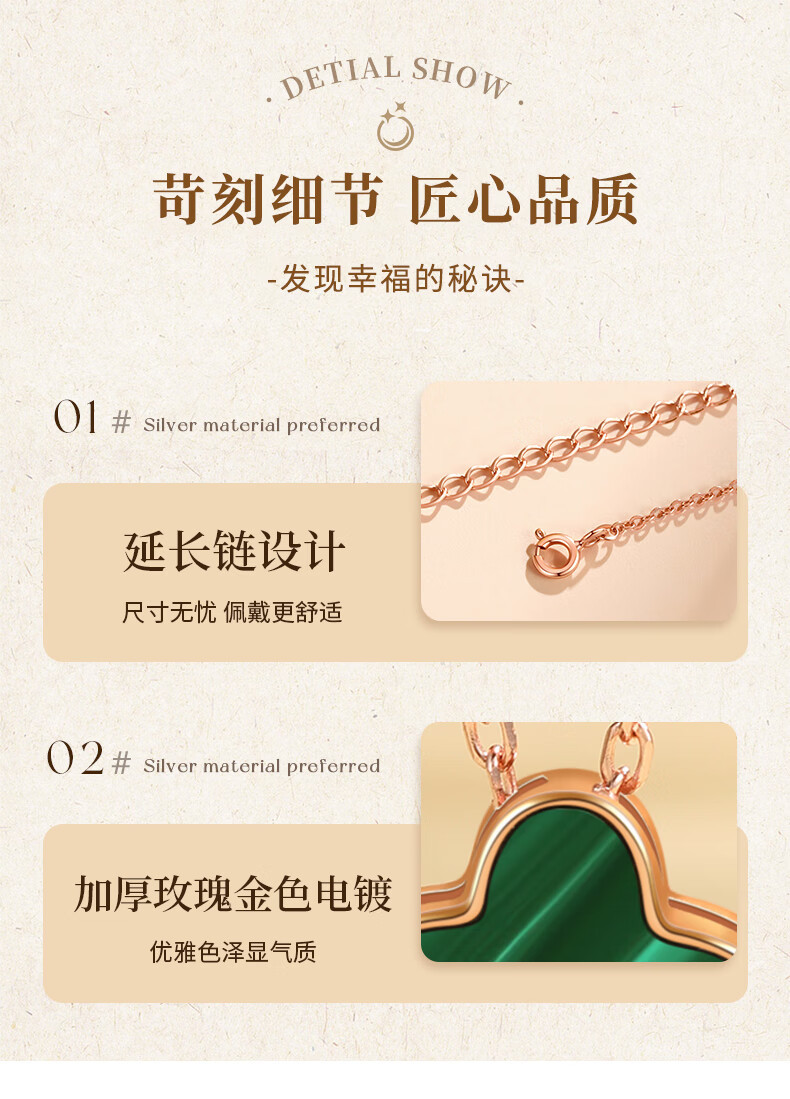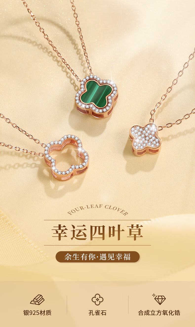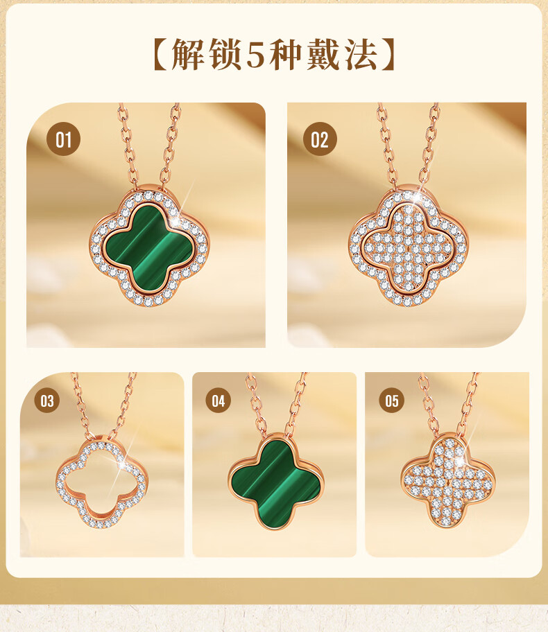 六鑫珠宝 S925纯银孔雀石四叶草项链 创意多戴设计
