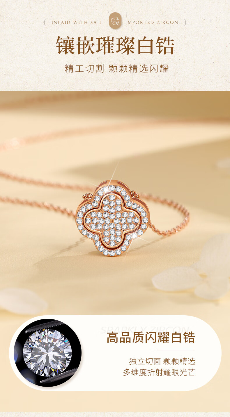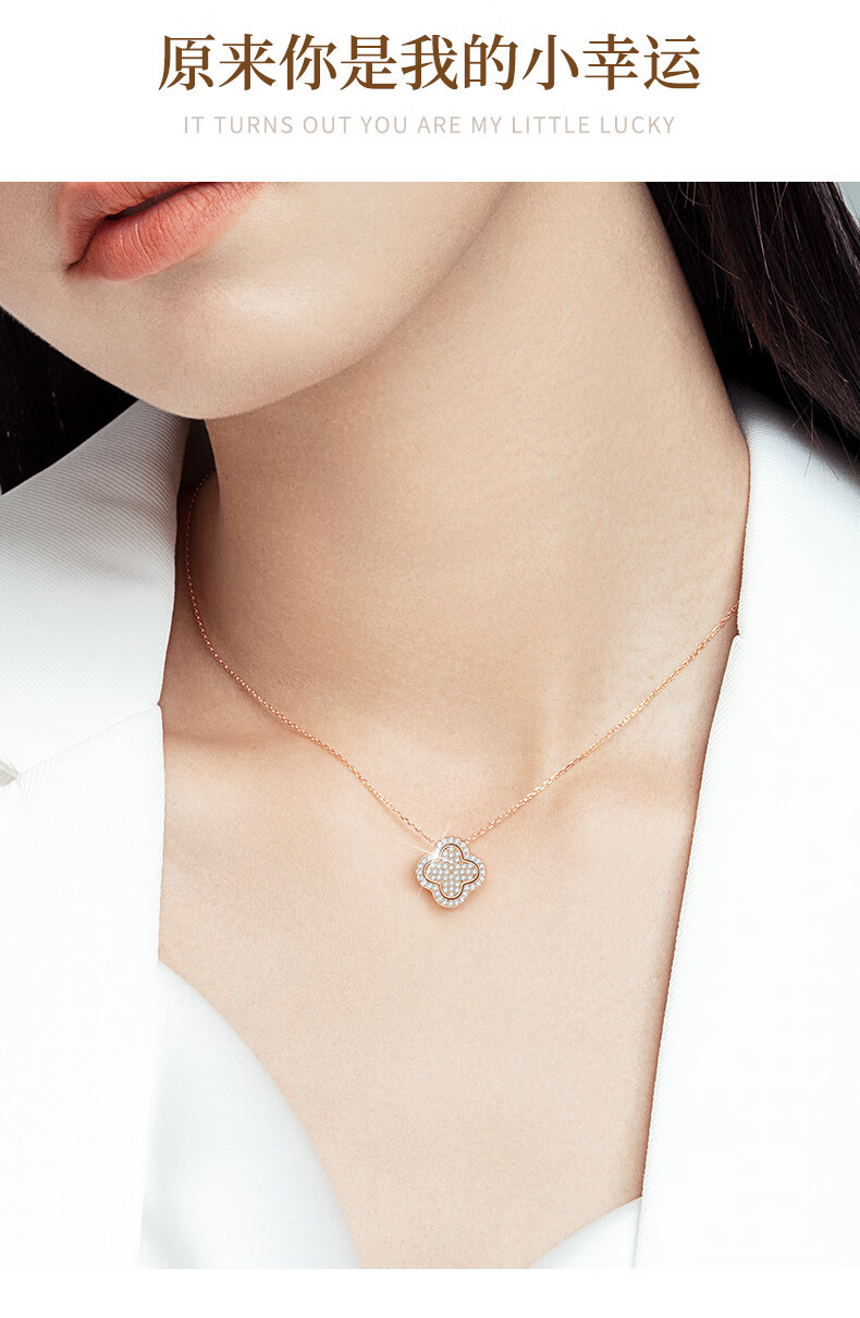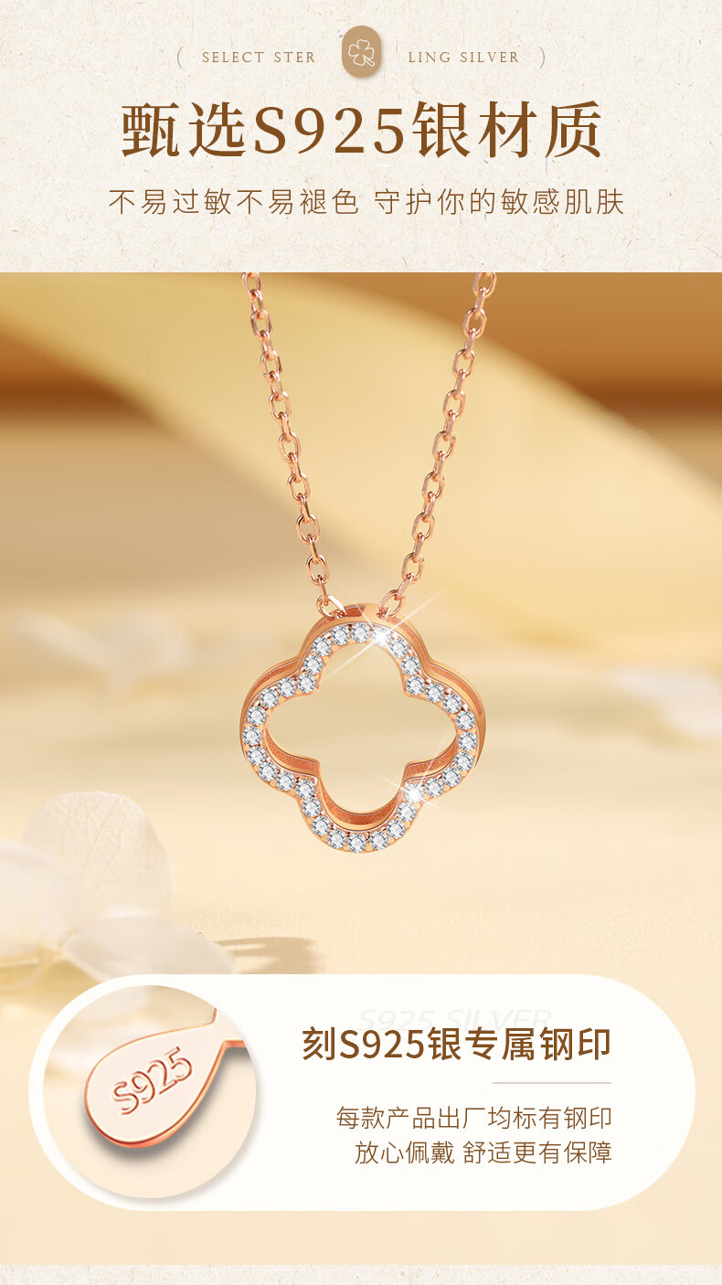 六鑫珠宝 S925纯银孔雀石四叶草项链 创意多戴设计
