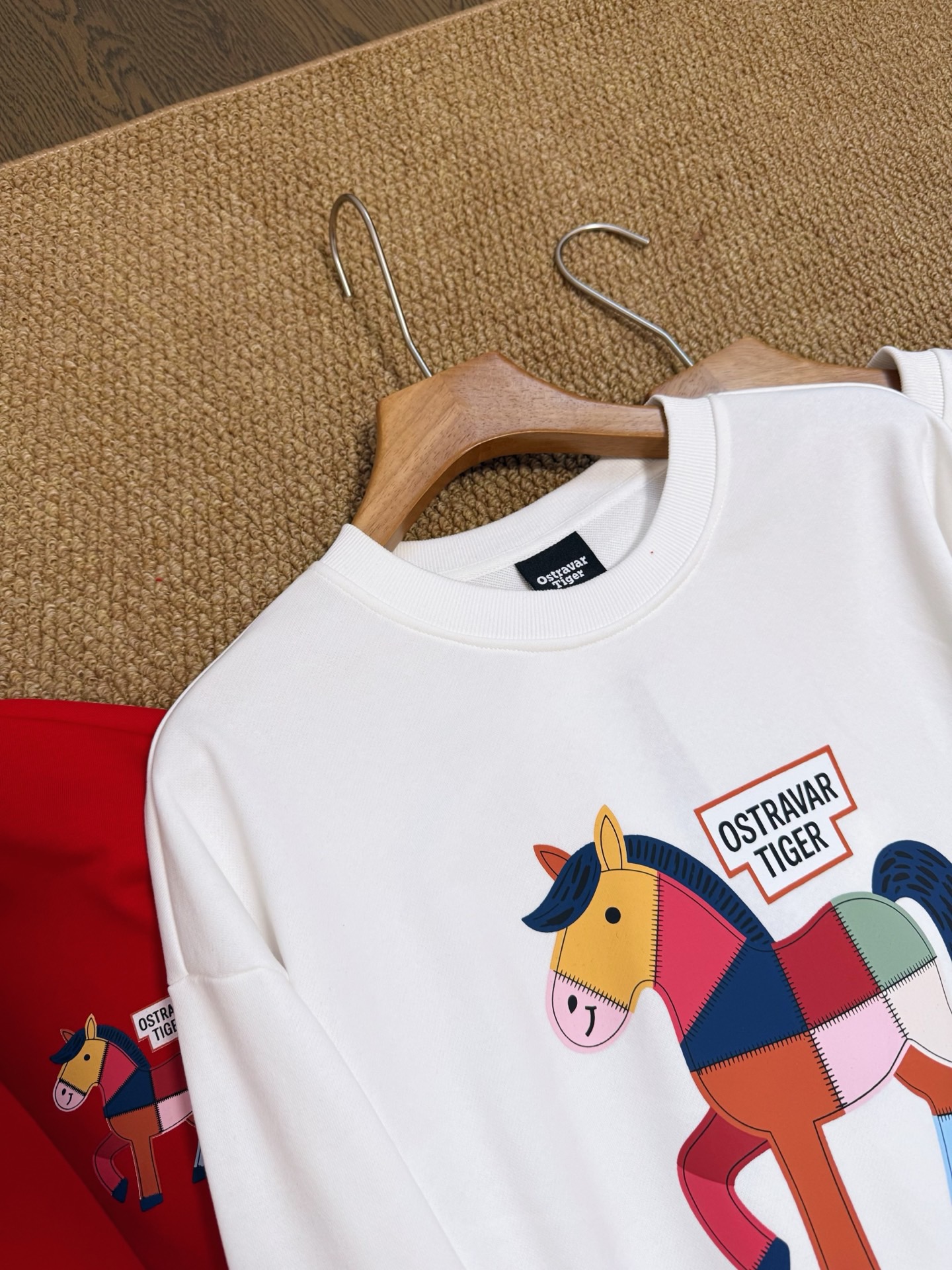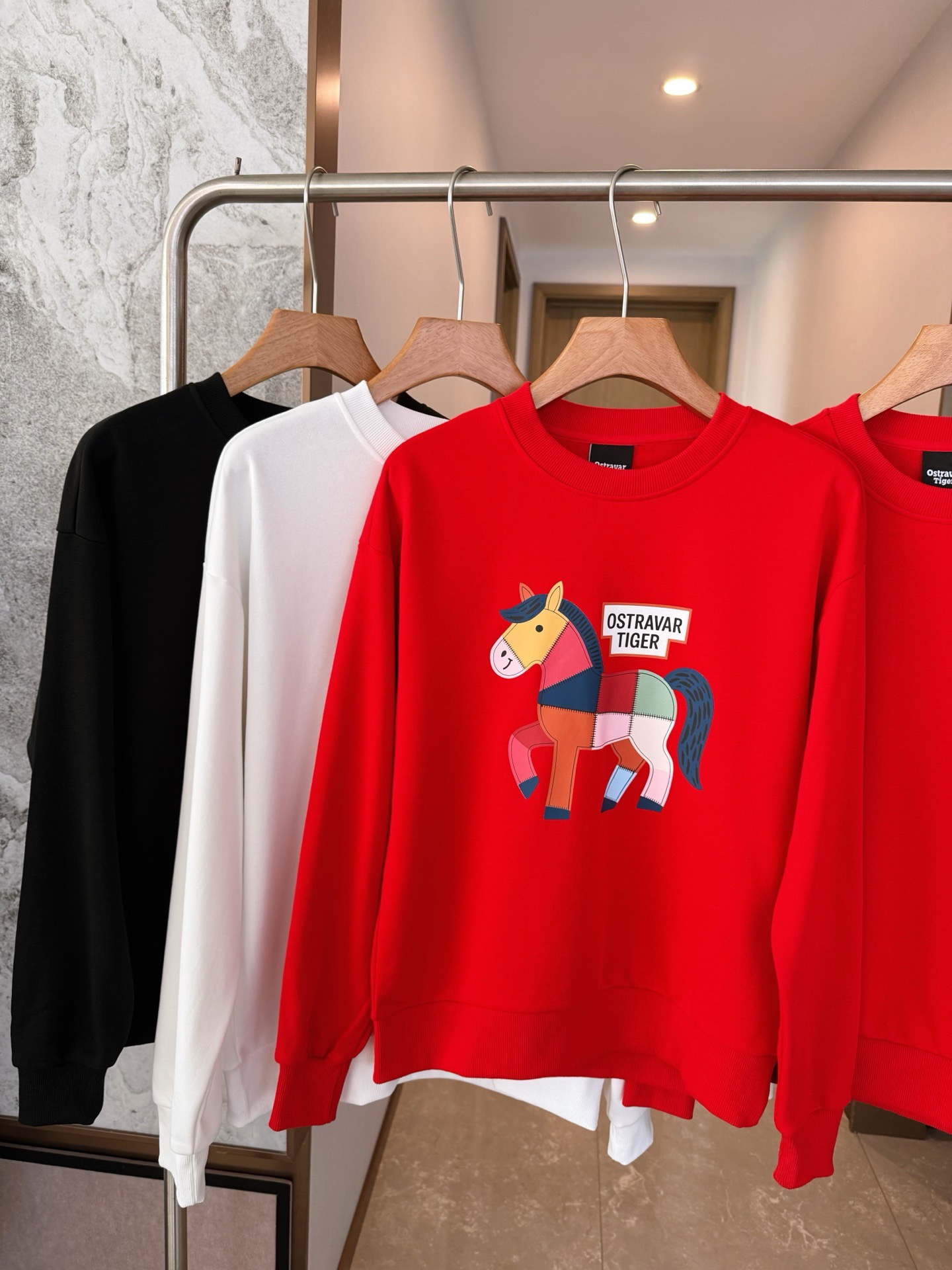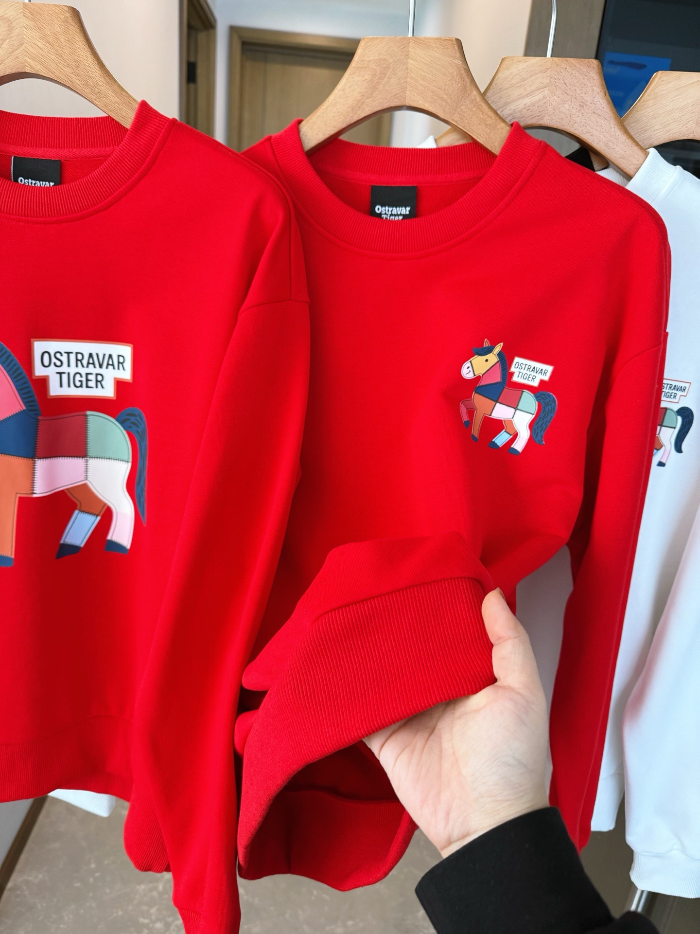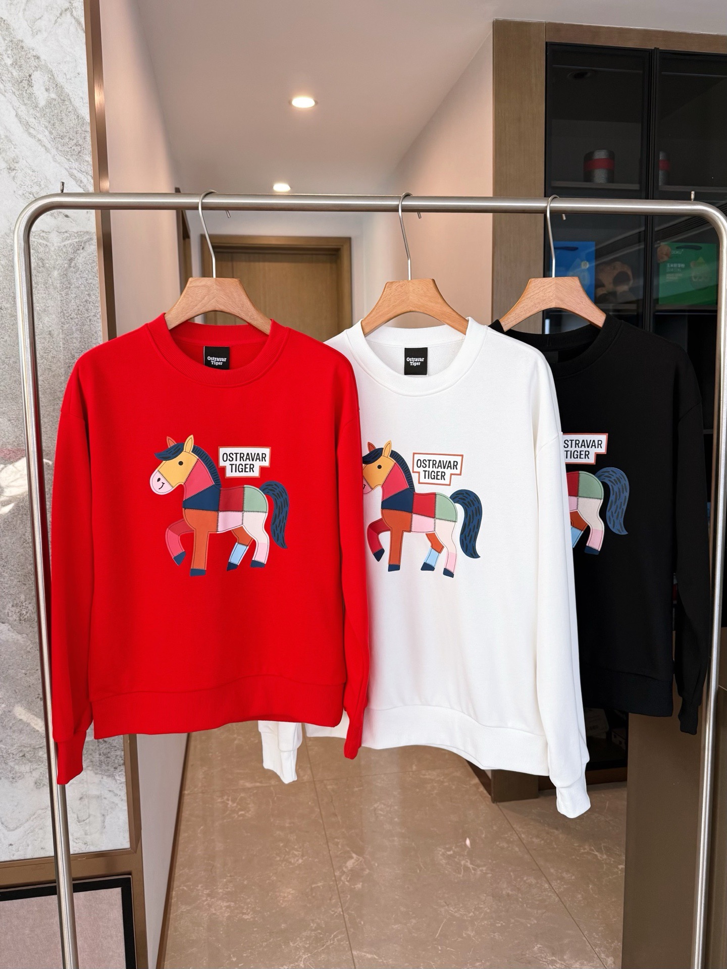 .26马年新年款!正品!OstravarTiger彩马印花情侣圆领卫衣 小标马