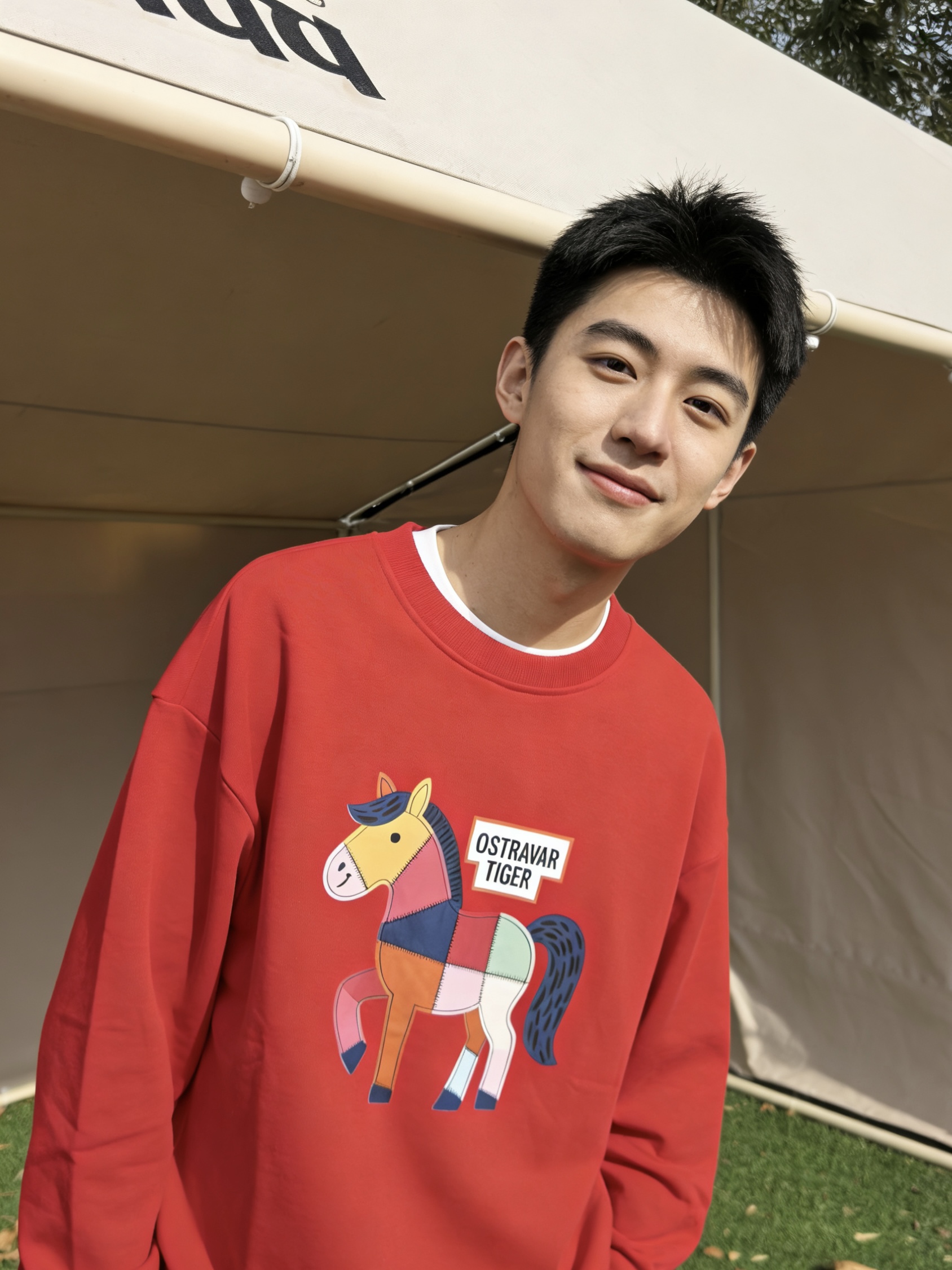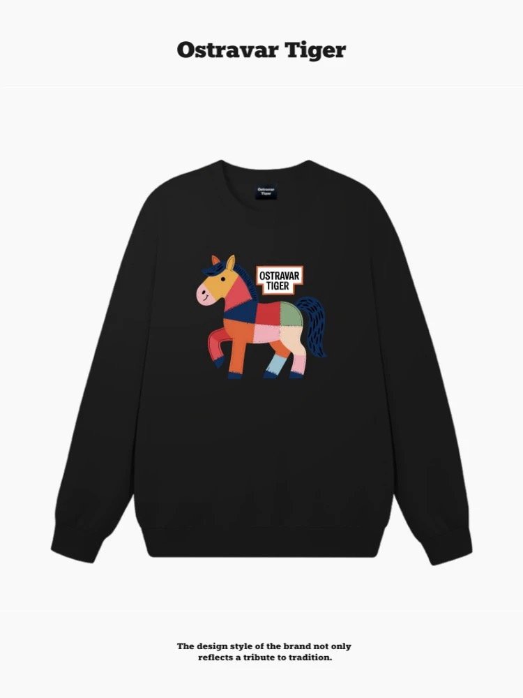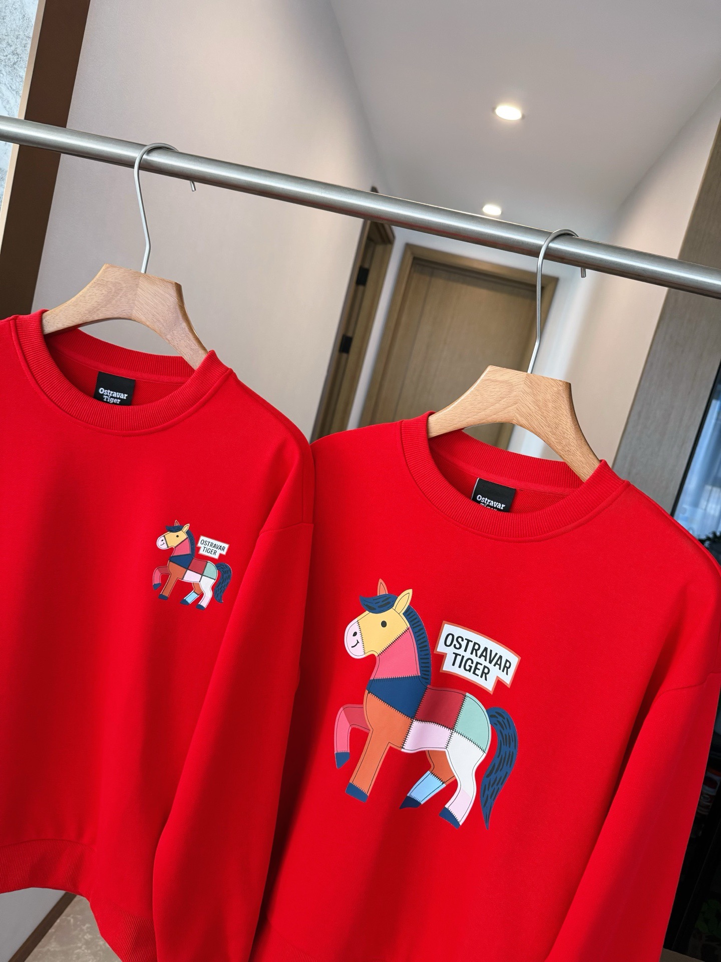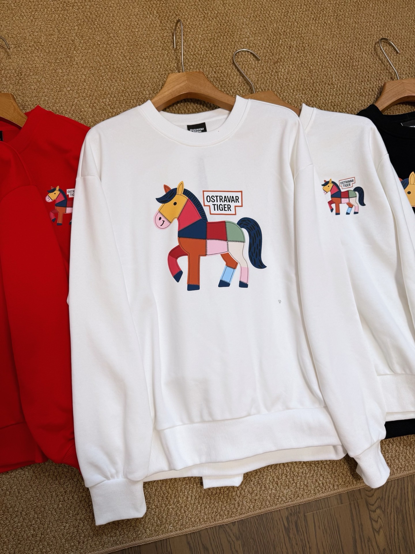 .26马年新年款!正品!OstravarTiger彩马印花情侣圆领卫衣 小标马