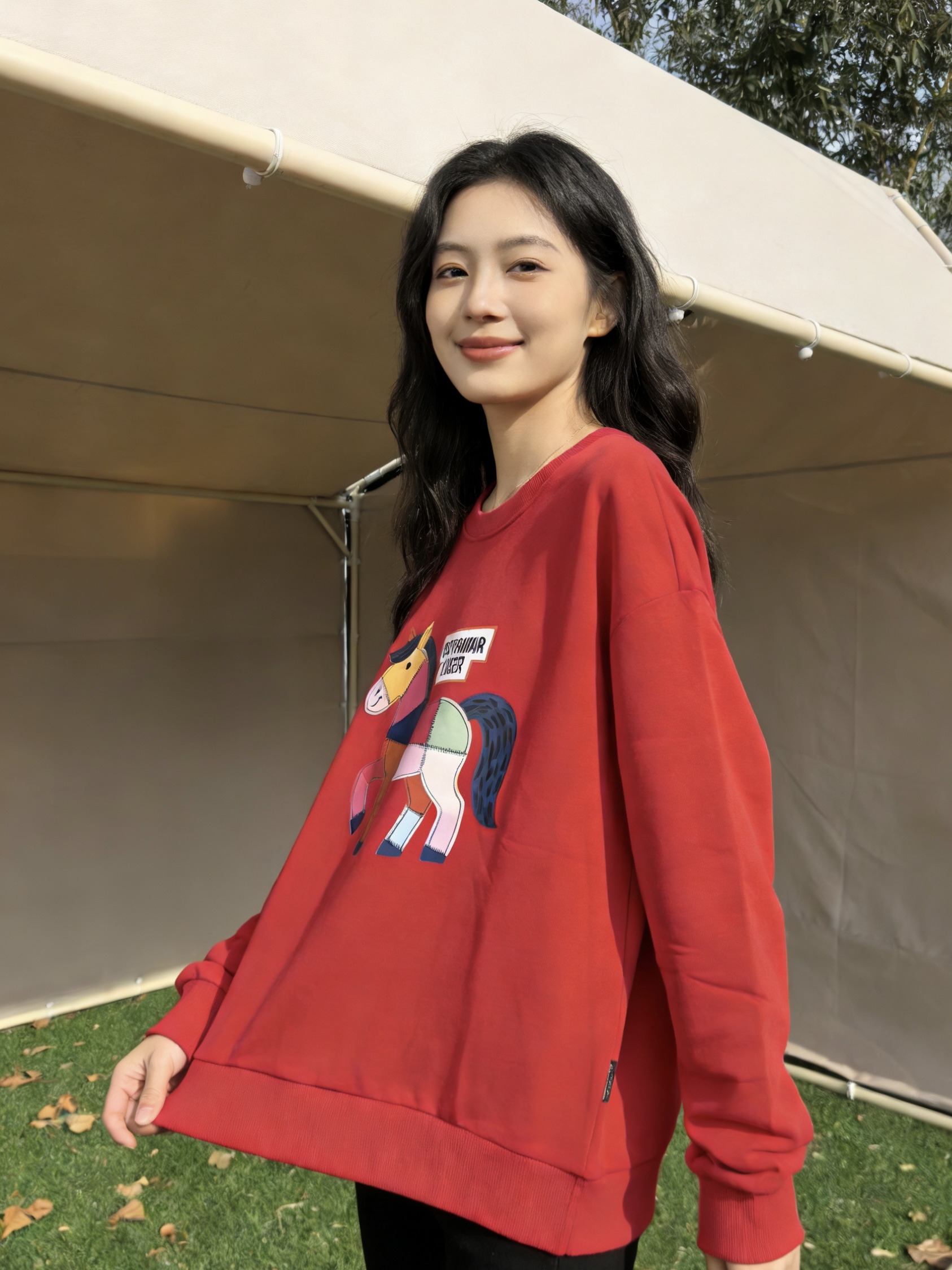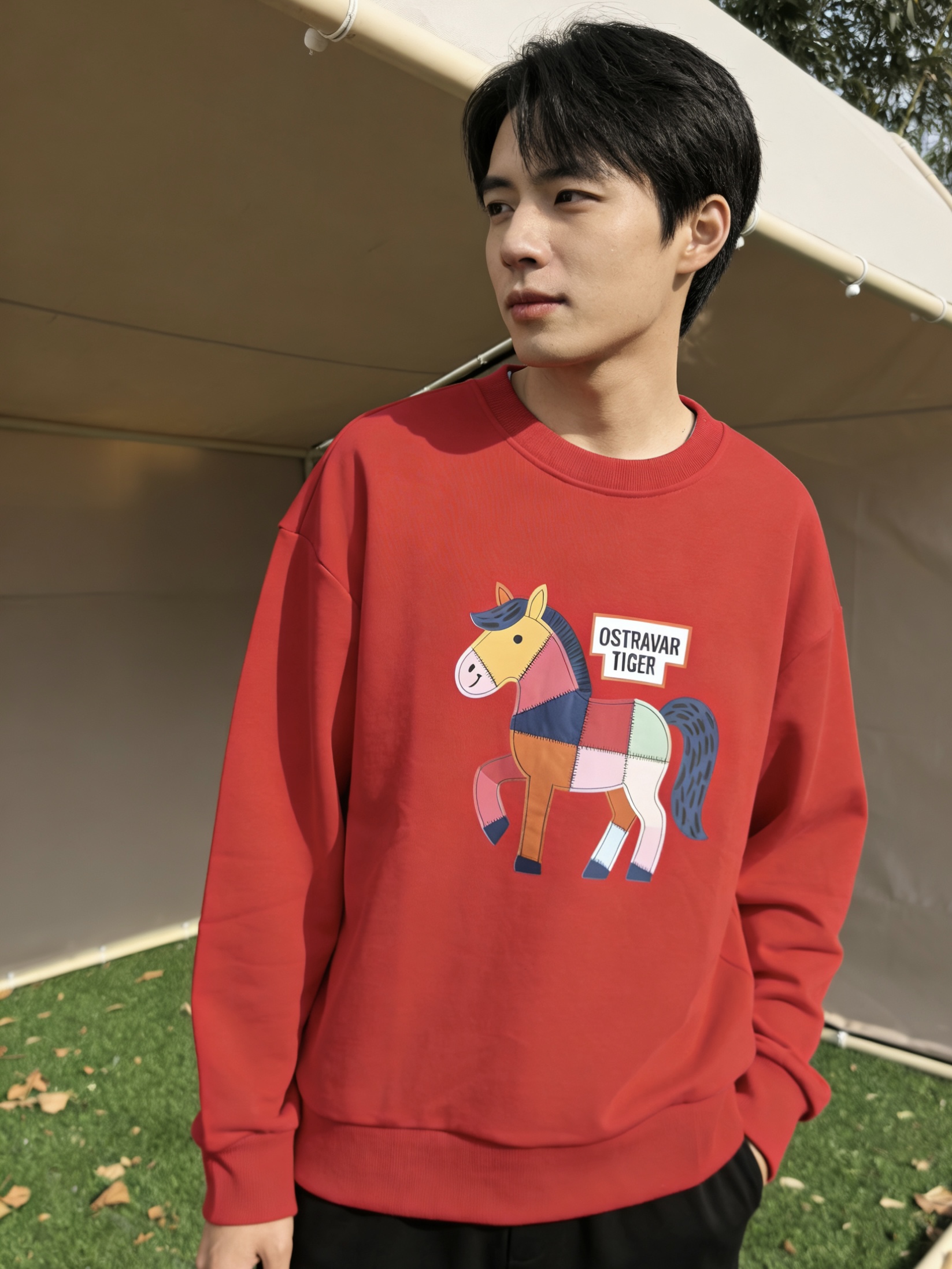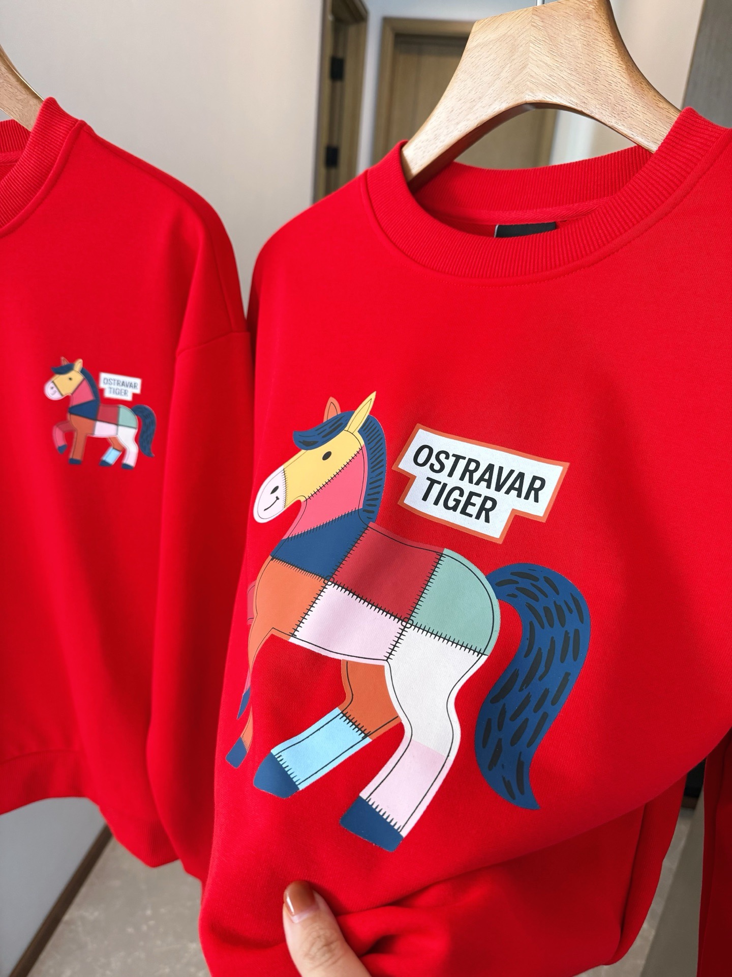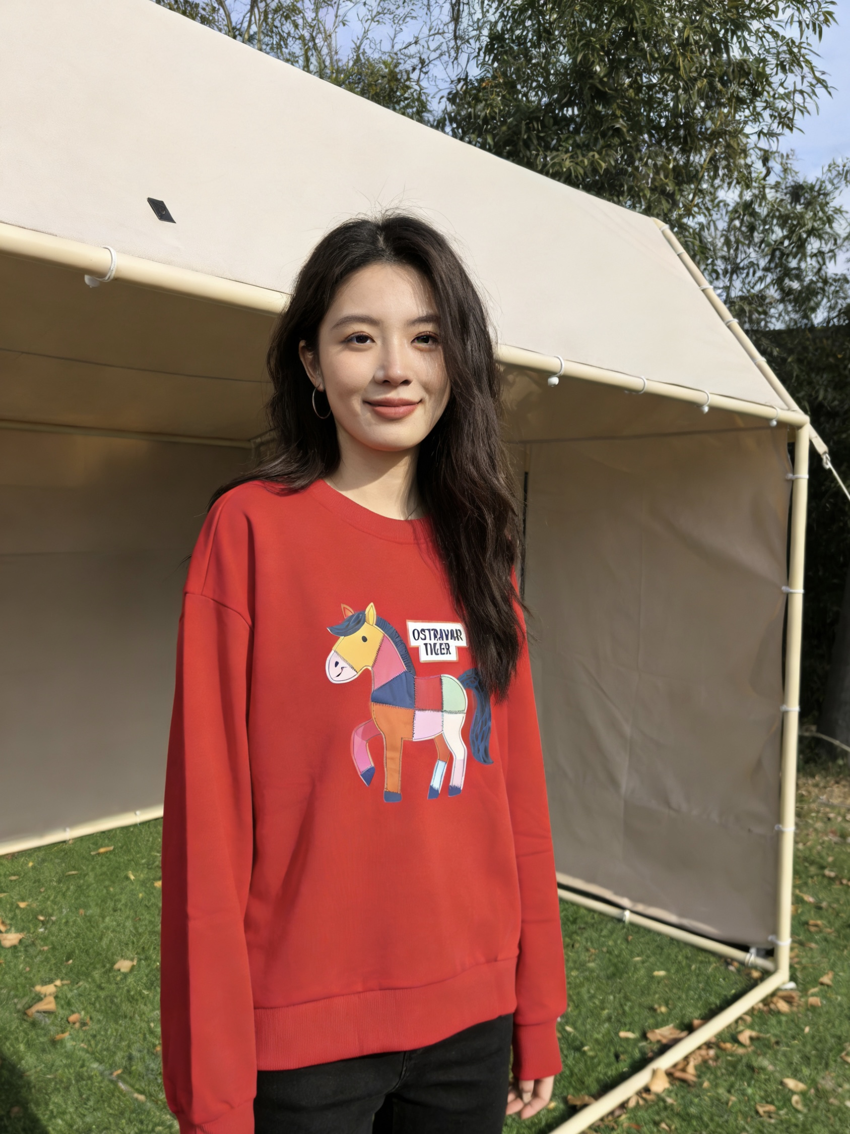 .26马年新年款!正品!OstravarTiger彩马印花情侣圆领卫衣 小标马