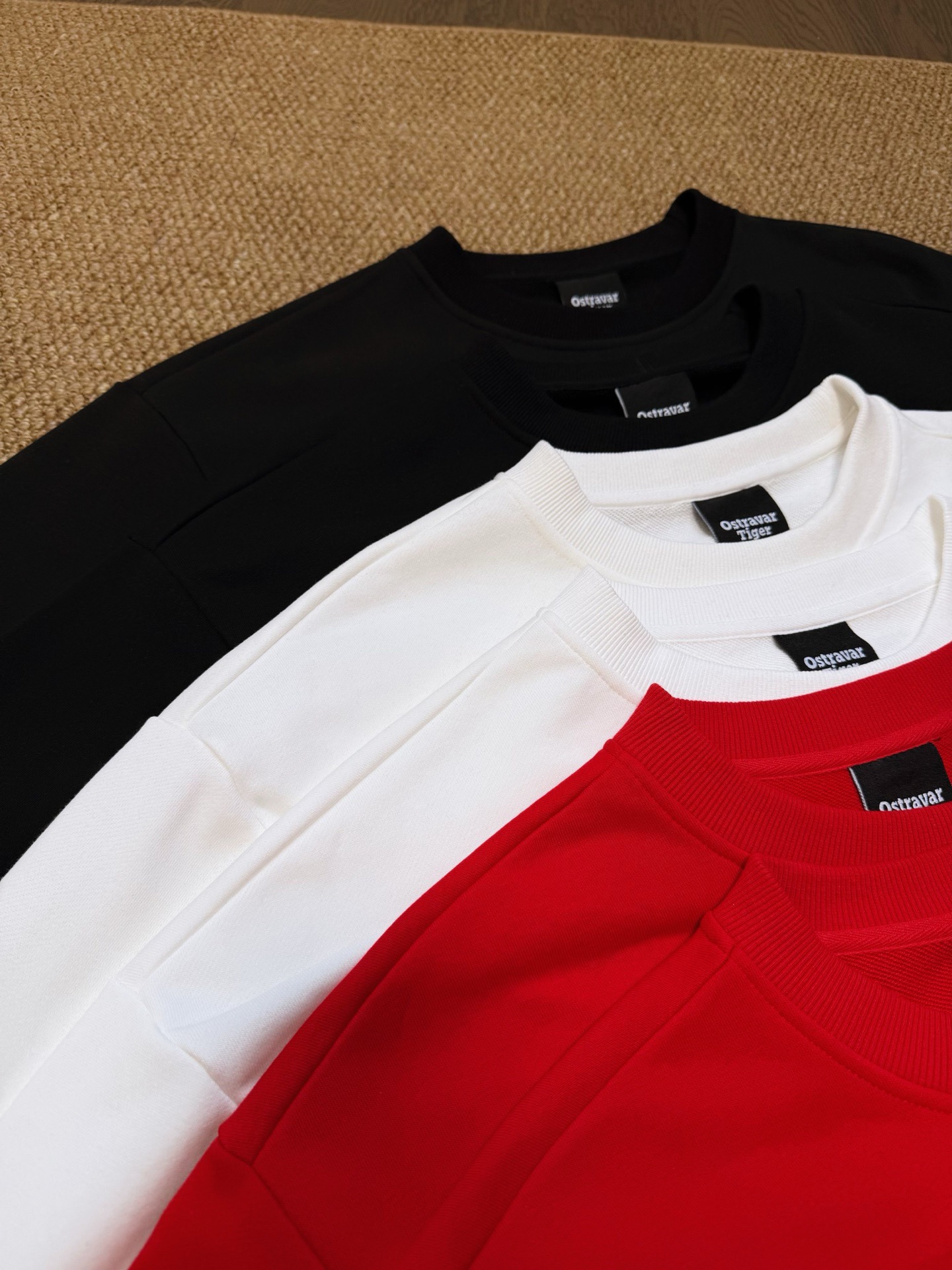 男女同款设计,圆领落肩的休闲合身版型,松量适中,空间感足包容性好,但不属于oversize廓形,穿起来比较是利落的,休闲舒适但不会松垮垮的没精神。