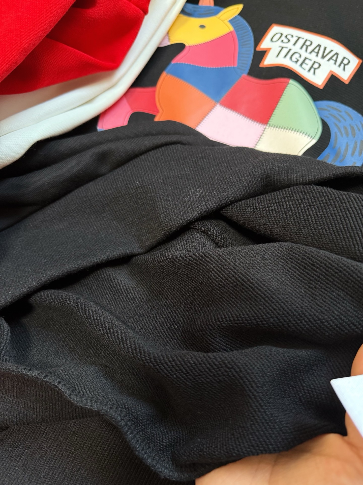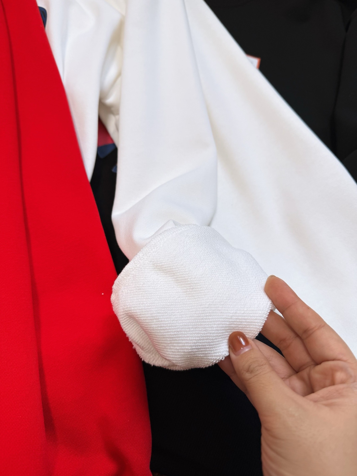 客供87%棉13%聚酯纤维的针织毛圈面料,质地柔软爽滑触感细腻光洁,贴身穿超舒服!布面纹理紧凑,内里毛圈清晰,软但立整有支撑感,垂顺有型,透气干爽不会有一丝黏腻感!不易褪色掉毛,洗多少次都不发硬,也不会洗几水就松垮变形,延展弹性十足,耐穿抗造好打理!