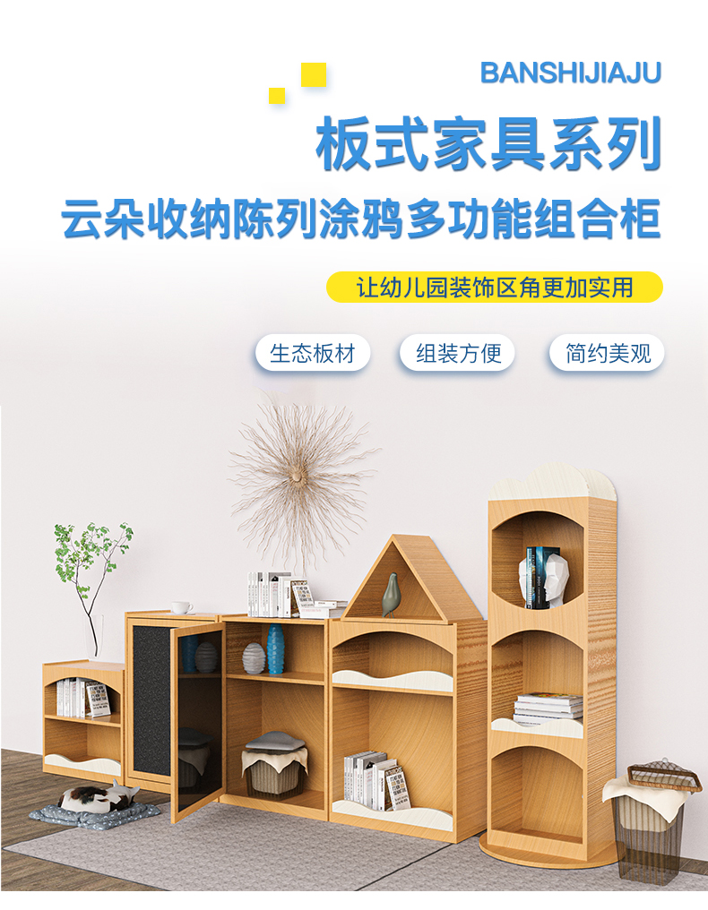云朵收纳陈列涂鸦多功能组合柜幼儿园小空间创意卡通落地云朵柜架