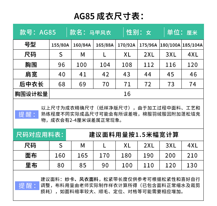 裁缝学苑AG85 马甲纸样女装外套上衣宽松风衣打版服装裁剪图马夹