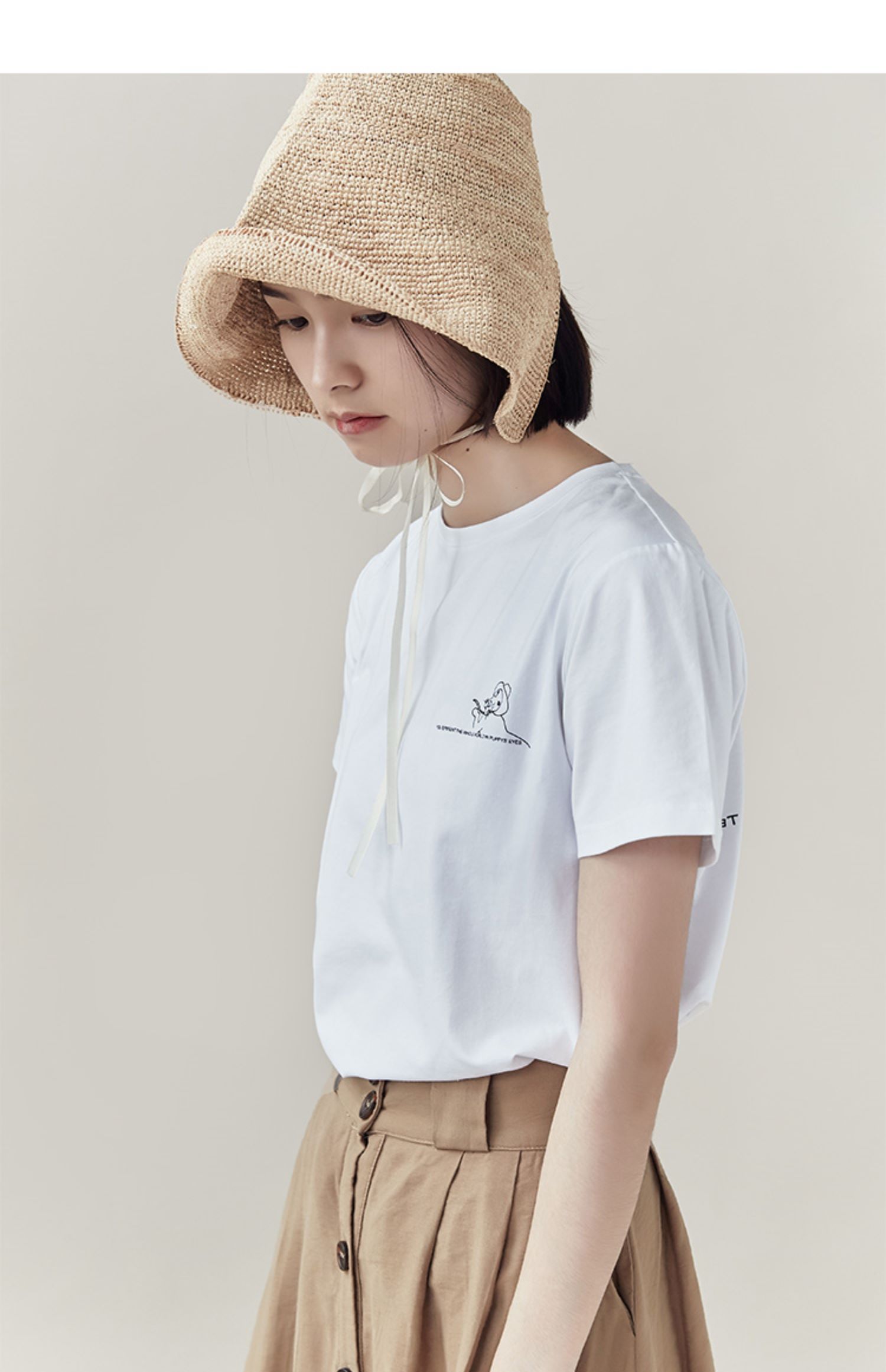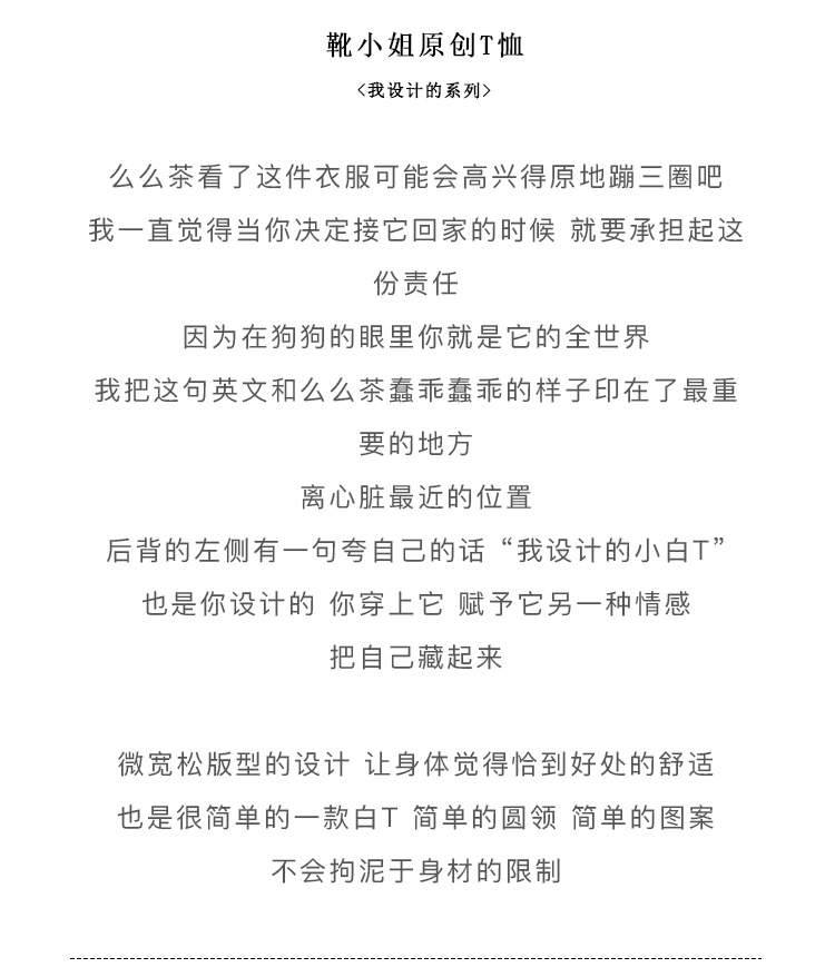 靴下物 原创设计么么茶系列白t恤女夏秋季宽松短款圆领纯棉短袖
