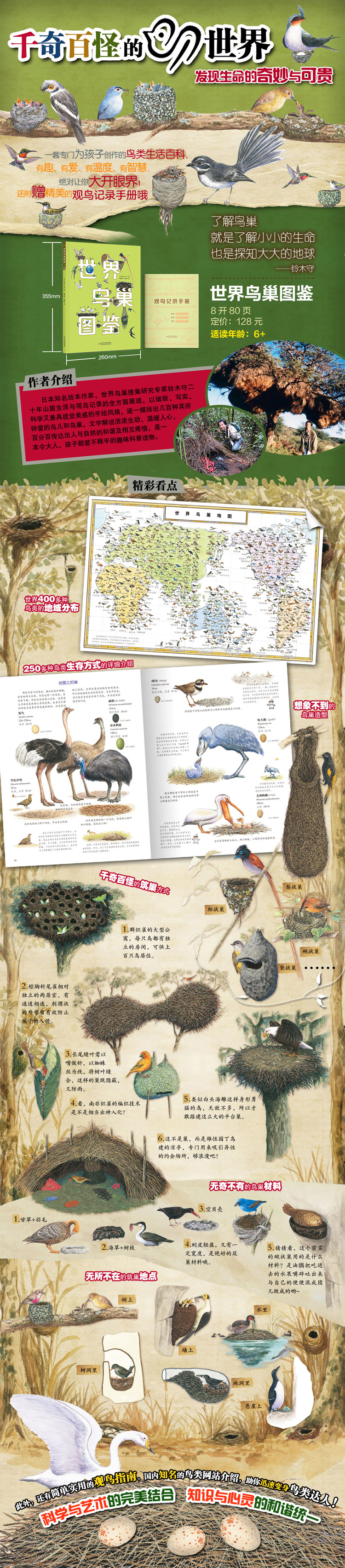 《世界鸟巢图鉴》科学与艺术的完美结合 知识与心灵的和谐统一 适读年龄 6-12岁