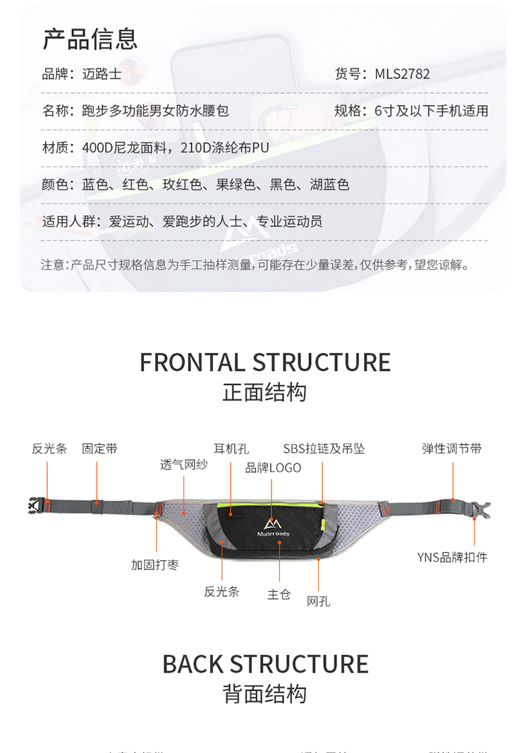 迈路士 运动跑步腰包男女户外超轻透气手机包马拉松越野跑步腰包