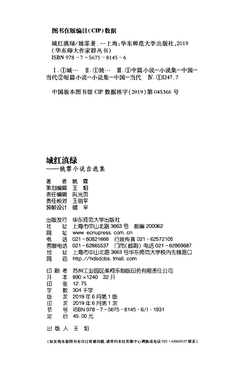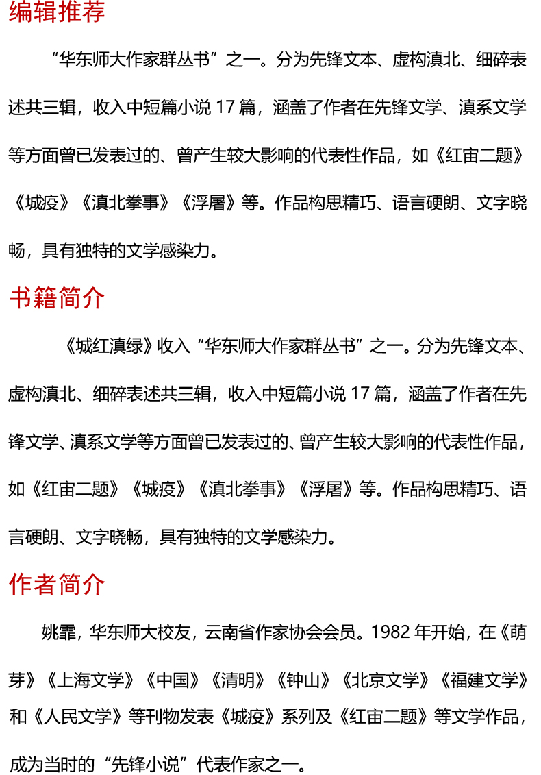 城红滇绿 姚霏小说自选集 华东师大作家群丛书第4辑