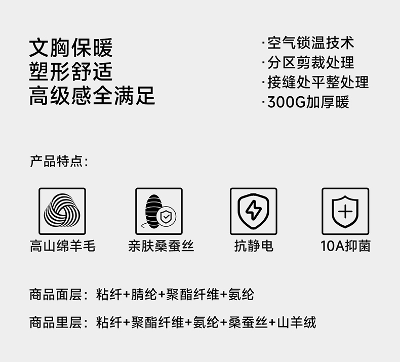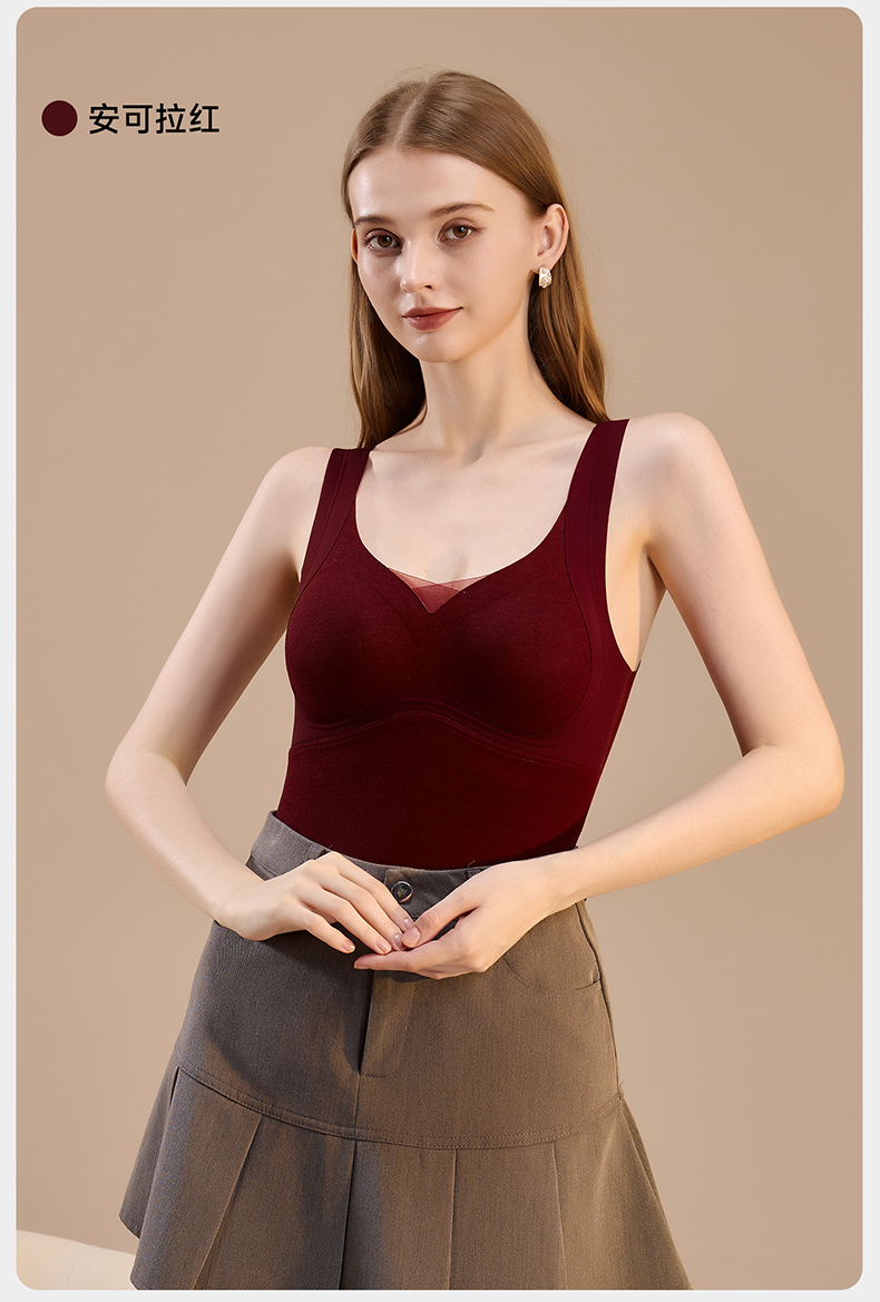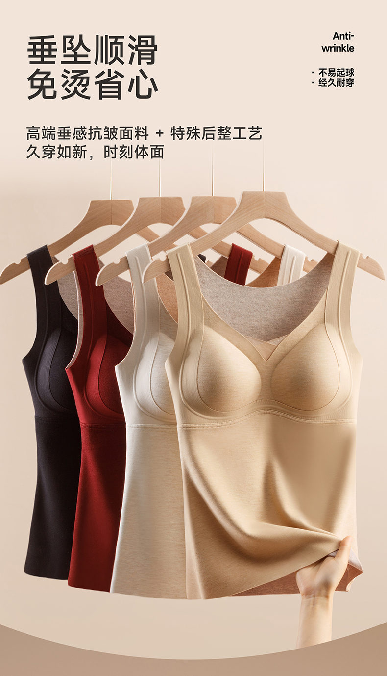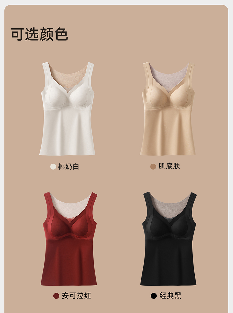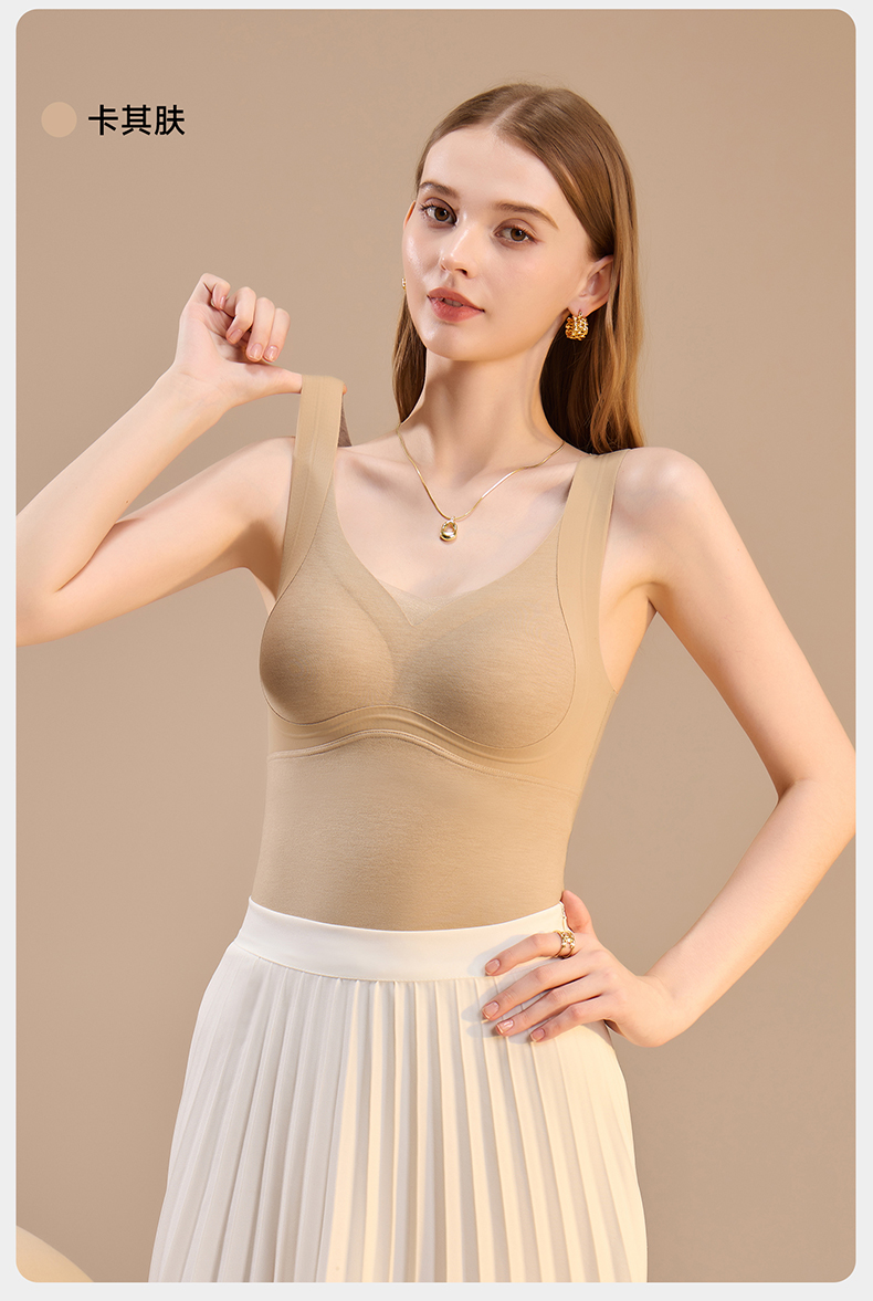 锁温能力好强,穿一件小肚子立刻暖了!而且免穿文胸哦,贼方便!一件足足有300g的蓬松暖绒!一件=内衣+保暖背心+打底衫!一件顶三件!