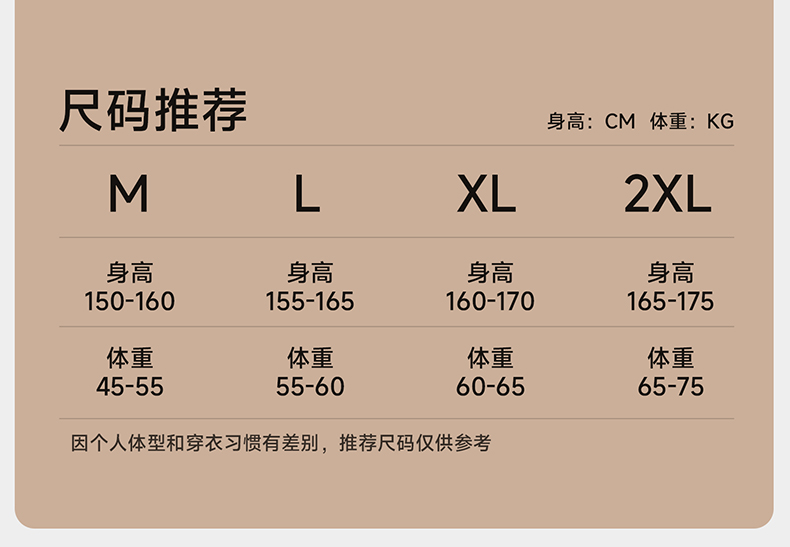 我163,135斤,穿XL码合适,重点是胸型还特别好!拖的住!是有型的bra!而且弹力大,不勒人,不起毛球,不起静电,而且能吸湿排汗!
