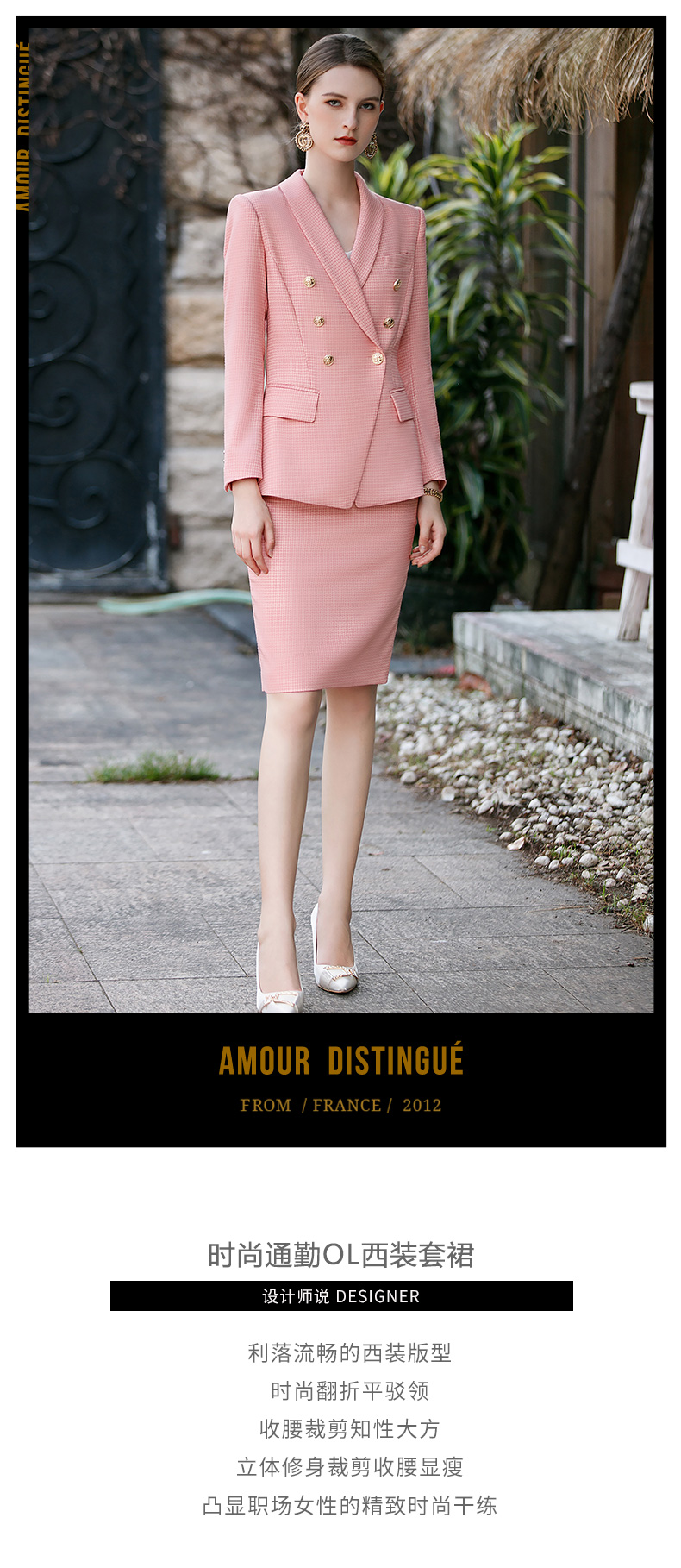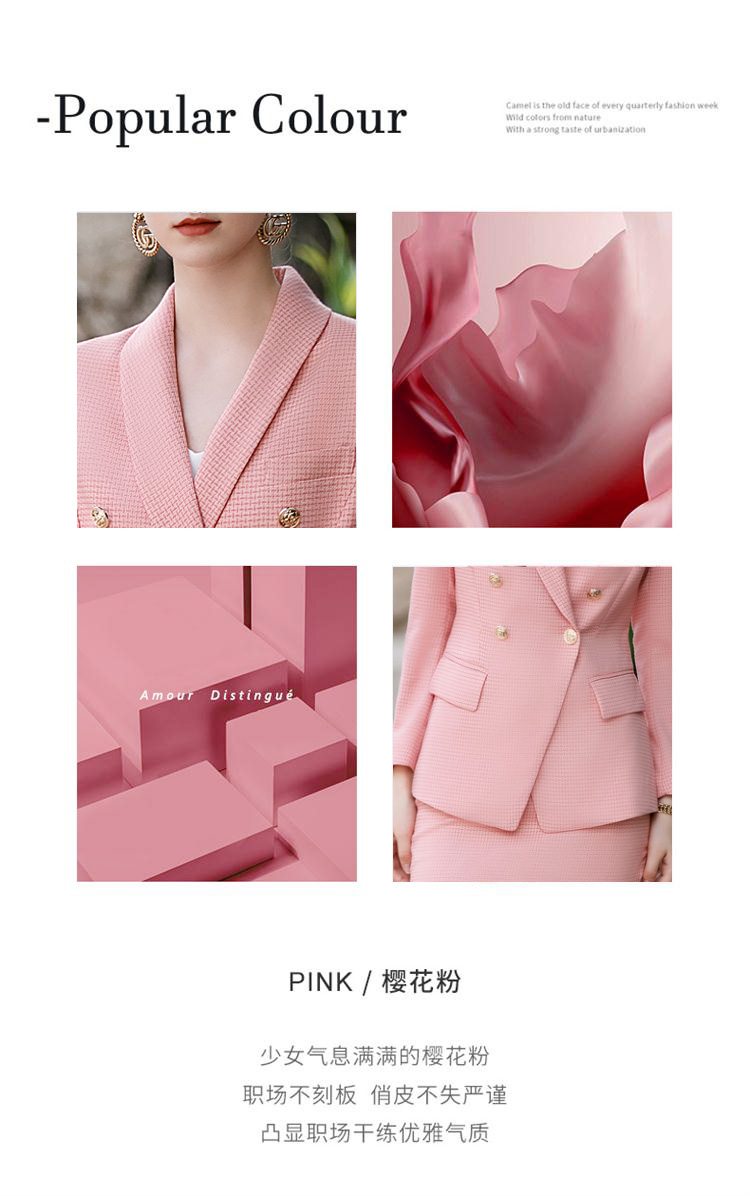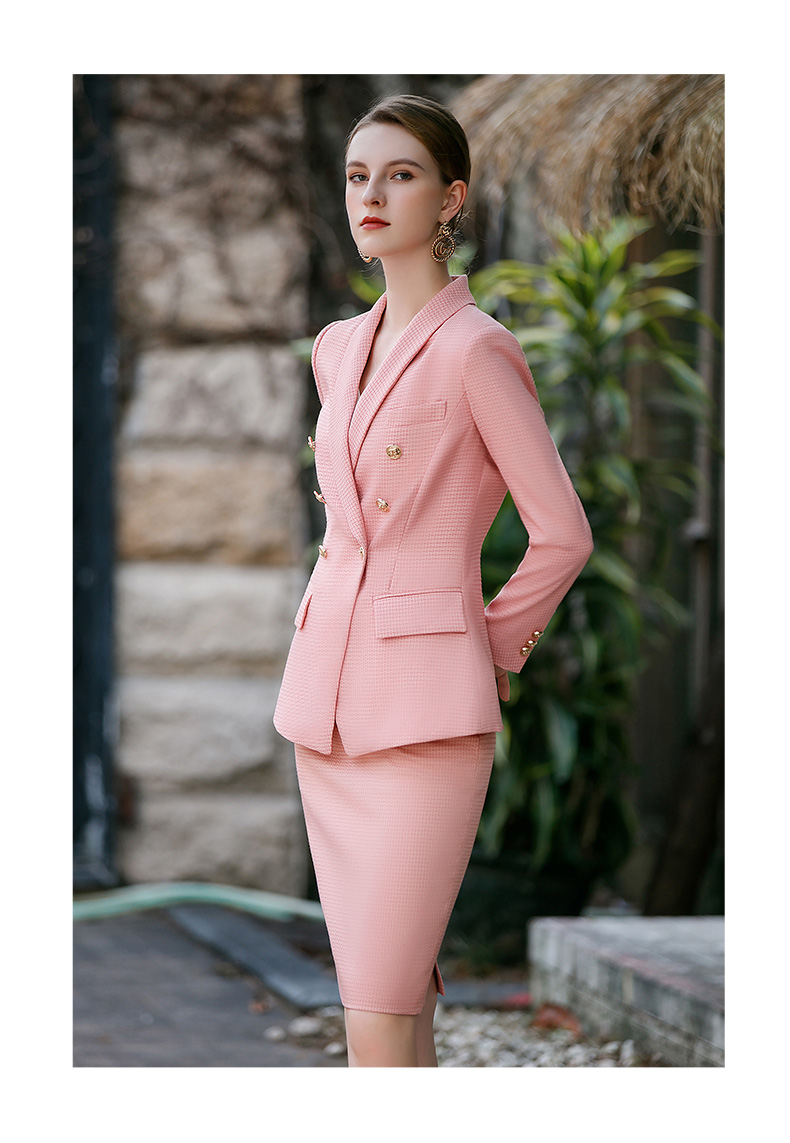 春季粉色西装套装女小香风两件套半身包臀裙肌理感西服