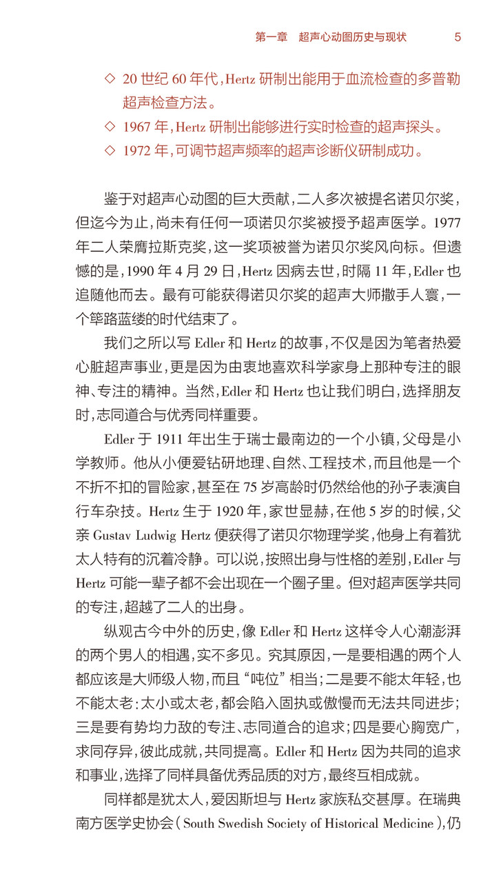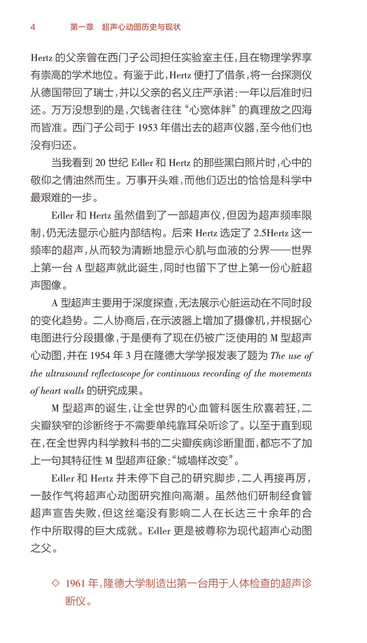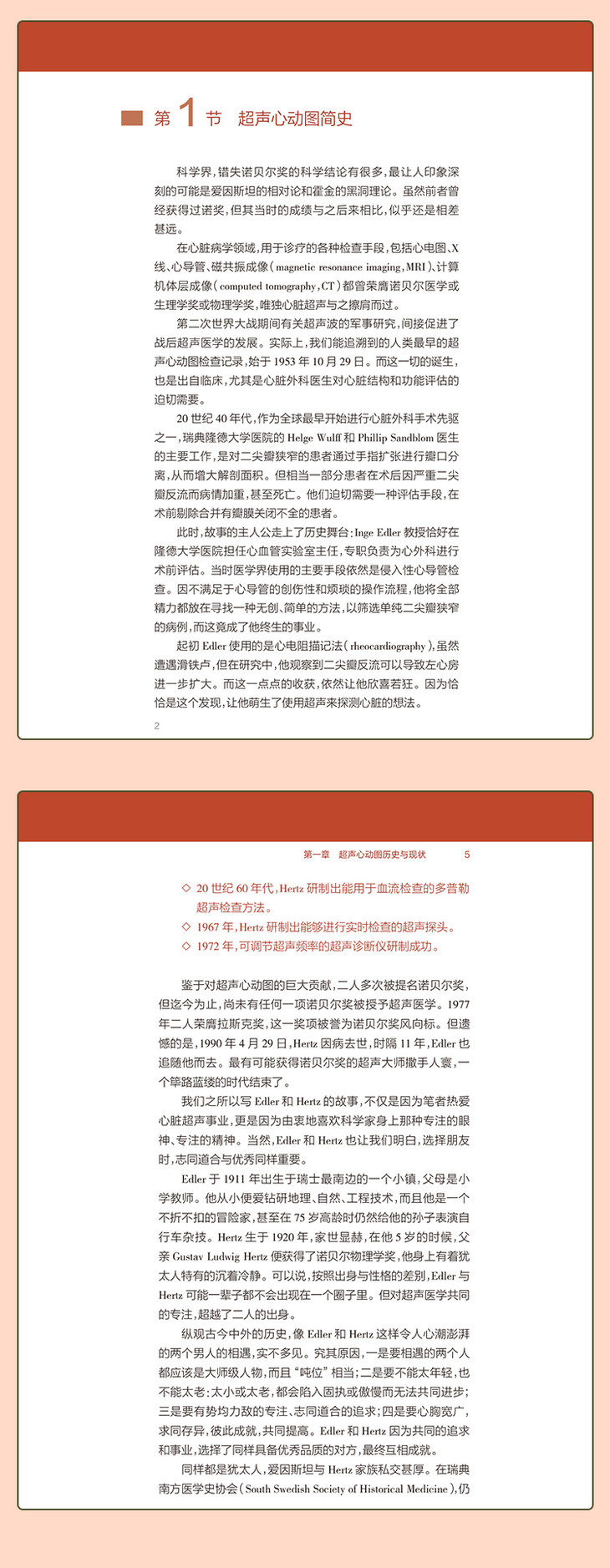 本书的主要特色是将疾病的发生发展等过程融入其中,同时不仅涉及超声在疾病中能“做什么”,还将重点讨论“怎么做”的问题。将超声检查中的思路、临床诊疗中的注意事项,心脏超声与心电图、外科、内科、介入、危急重症中的学科交叉内容分享给读者。可作为心内科、超声科、麻醉科、急诊科中年轻医生掌握的心脏超声检查的秘籍。 本书前期曾以公开课形式在网络直播,累计播放量超过200万人次,书稿内容以病例为中心、以问题为出发点,将常见心脏疾病的超声表现、心电图、体格检查做了细致的解析、讨论。为体现内容的完整性,作者将文本、PPT及视频讲座整合,并以二维码的形式加入文中,读者只需手机扫描便可访问当前的PPT和视频。这本书不仅仅是一本超声入门著作,更是一套移动的、掌上多媒体课程。