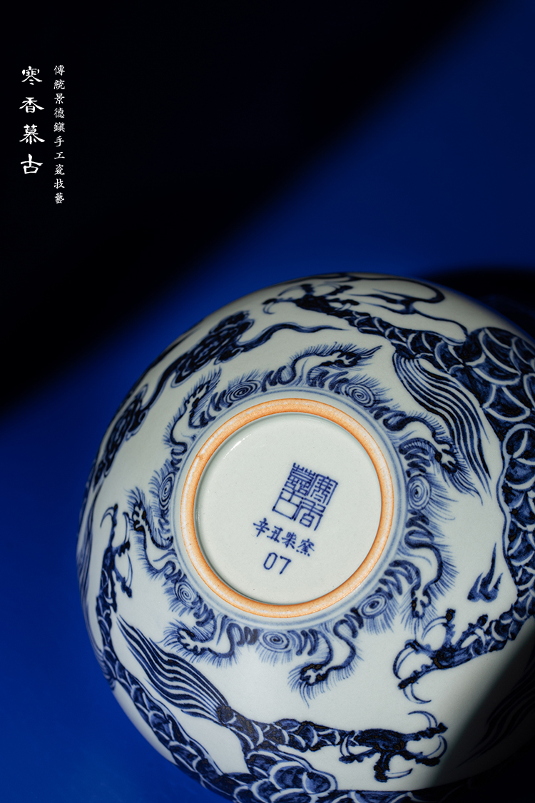 寒香慕古元青花龙纹锥形水洗