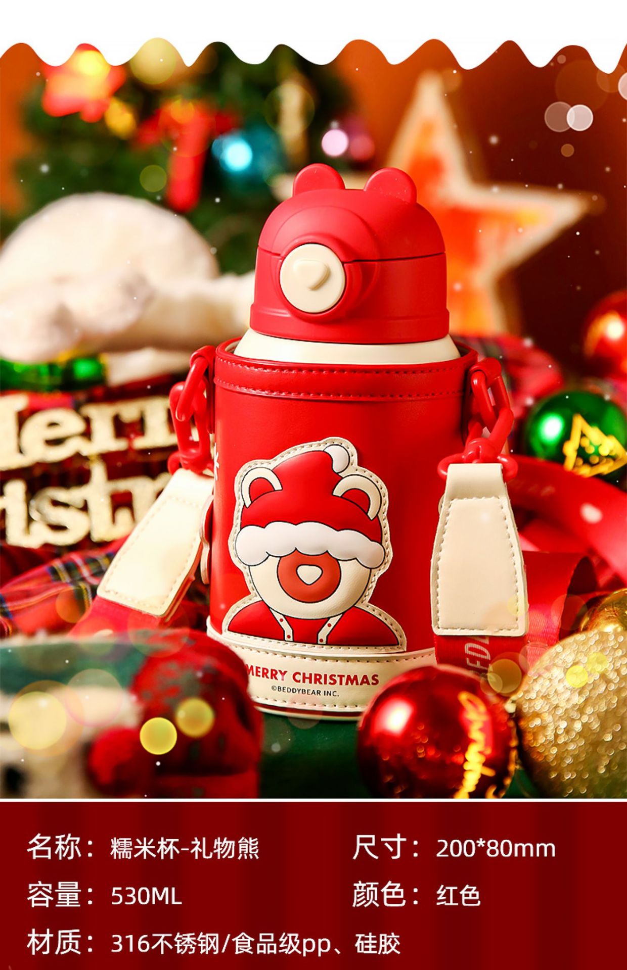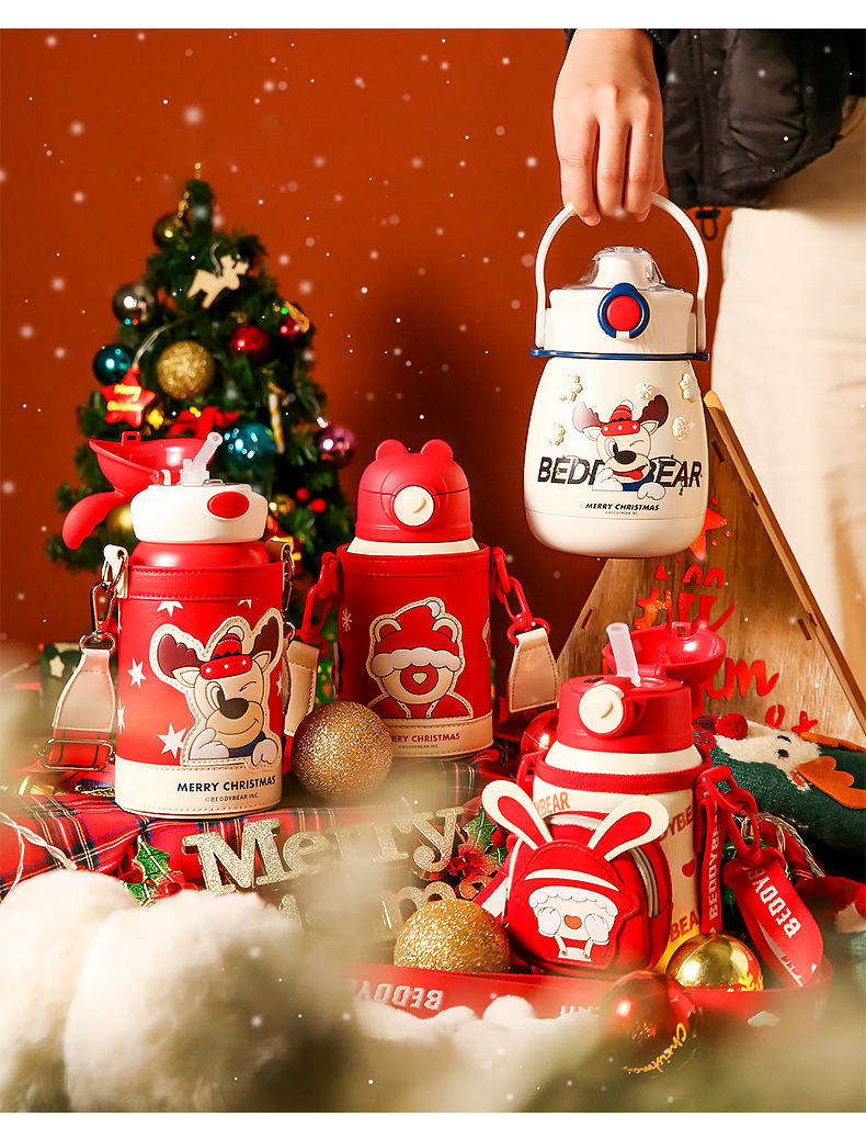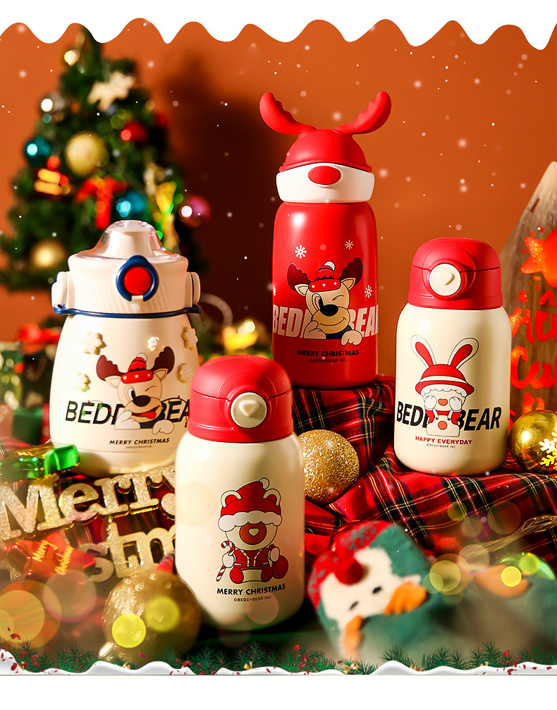 【圣诞礼物】杯具熊儿童保温杯圣诞礼物新款成人水杯男女宝宝小学生带吸管水壶