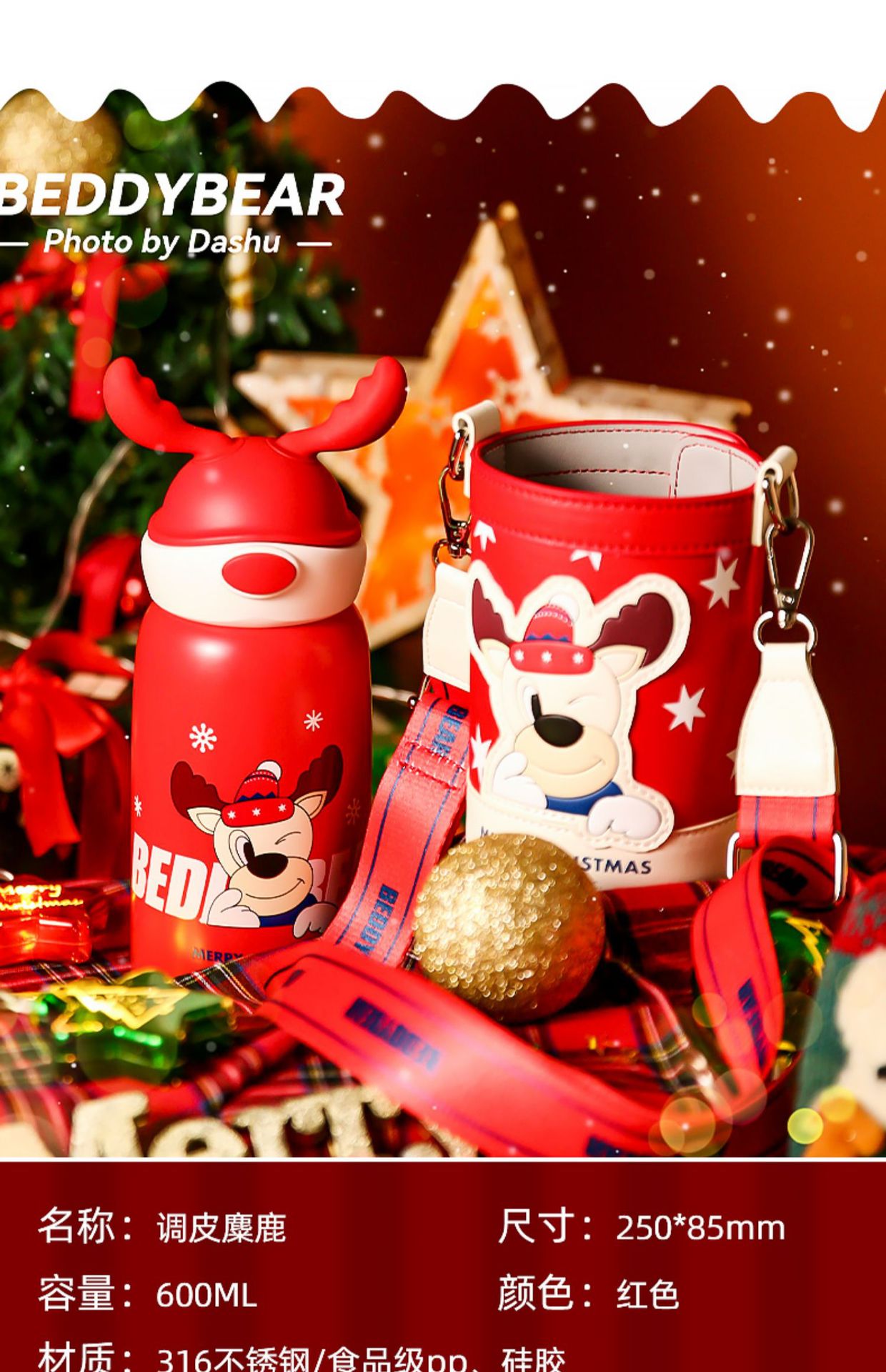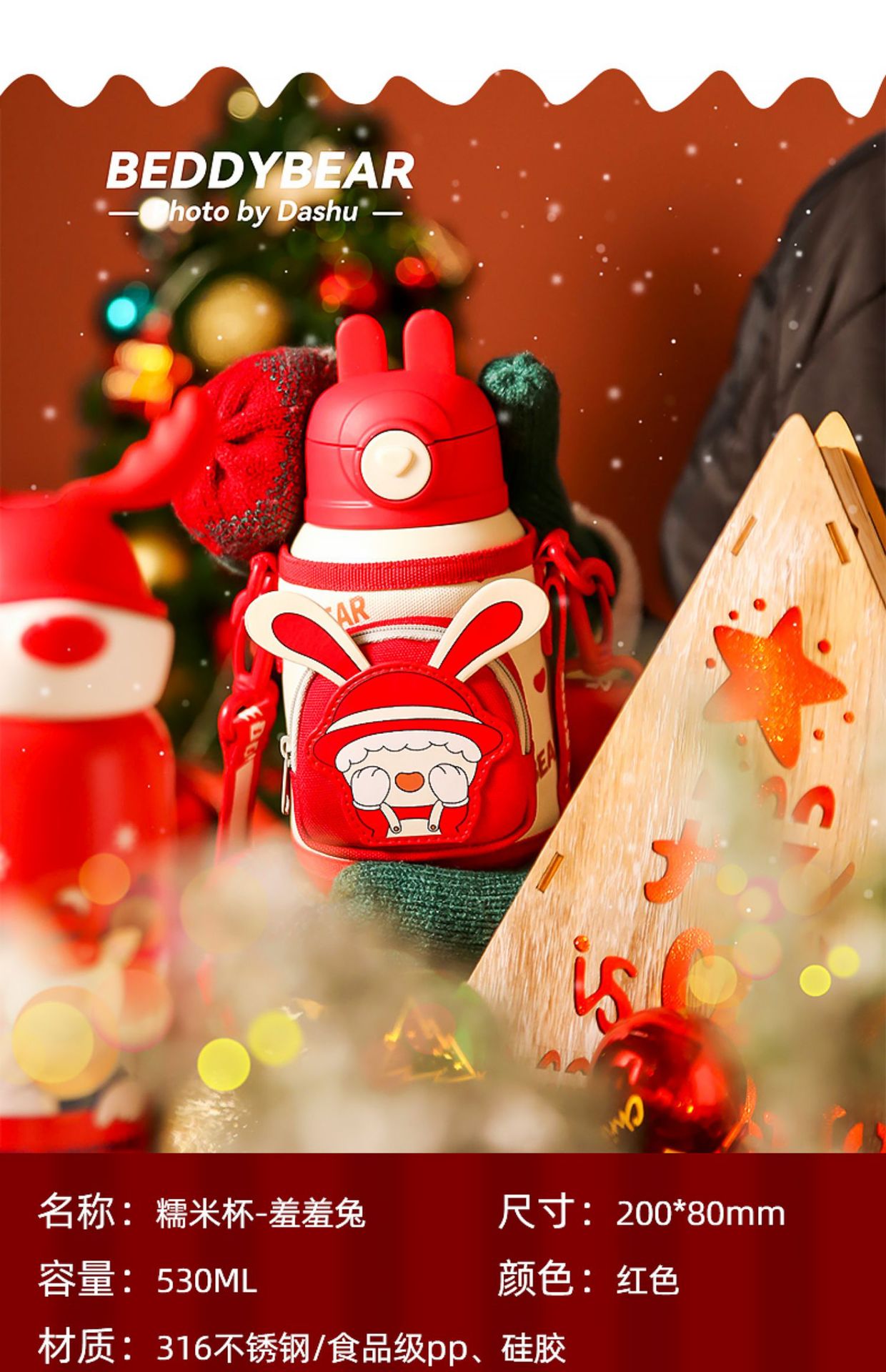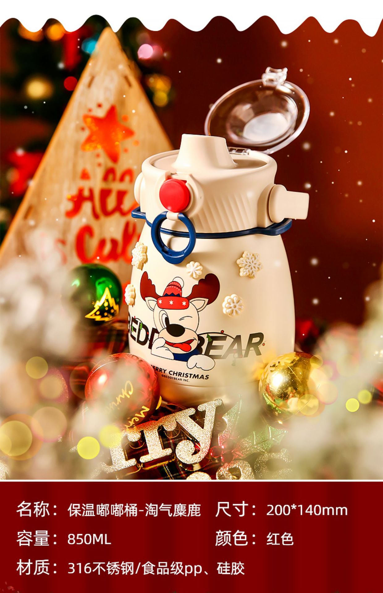 【圣诞礼物】杯具熊儿童保温杯圣诞礼物新款成人水杯男女宝宝小学生带吸管水壶