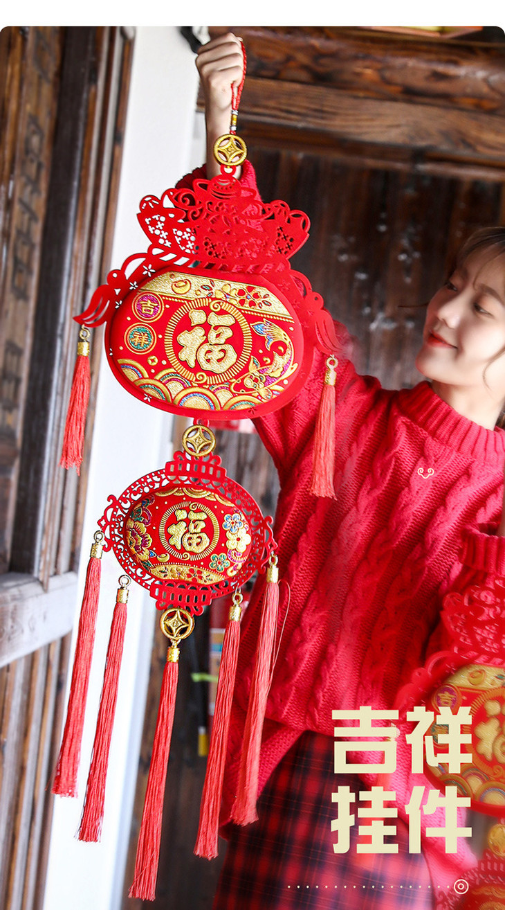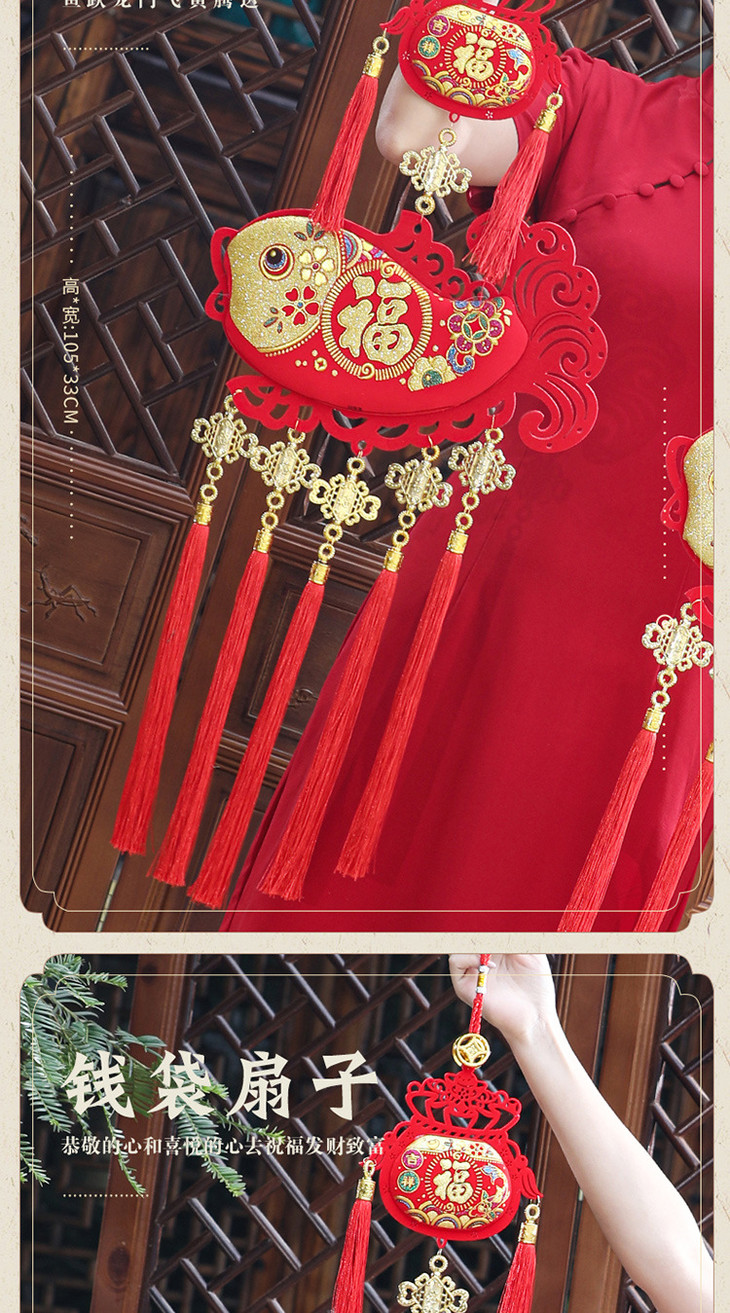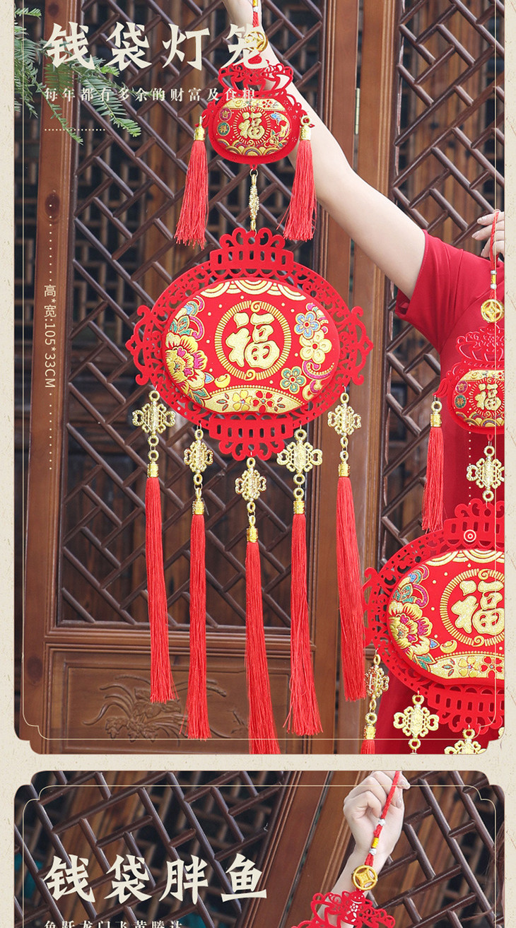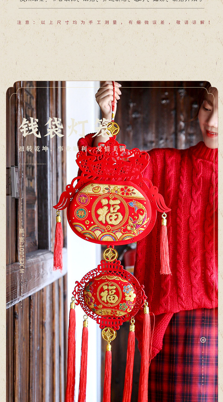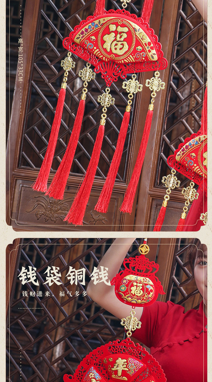 【装饰】*春节过年客厅室内装饰布置用品红灯笼串挂件红红火火钱袋挂