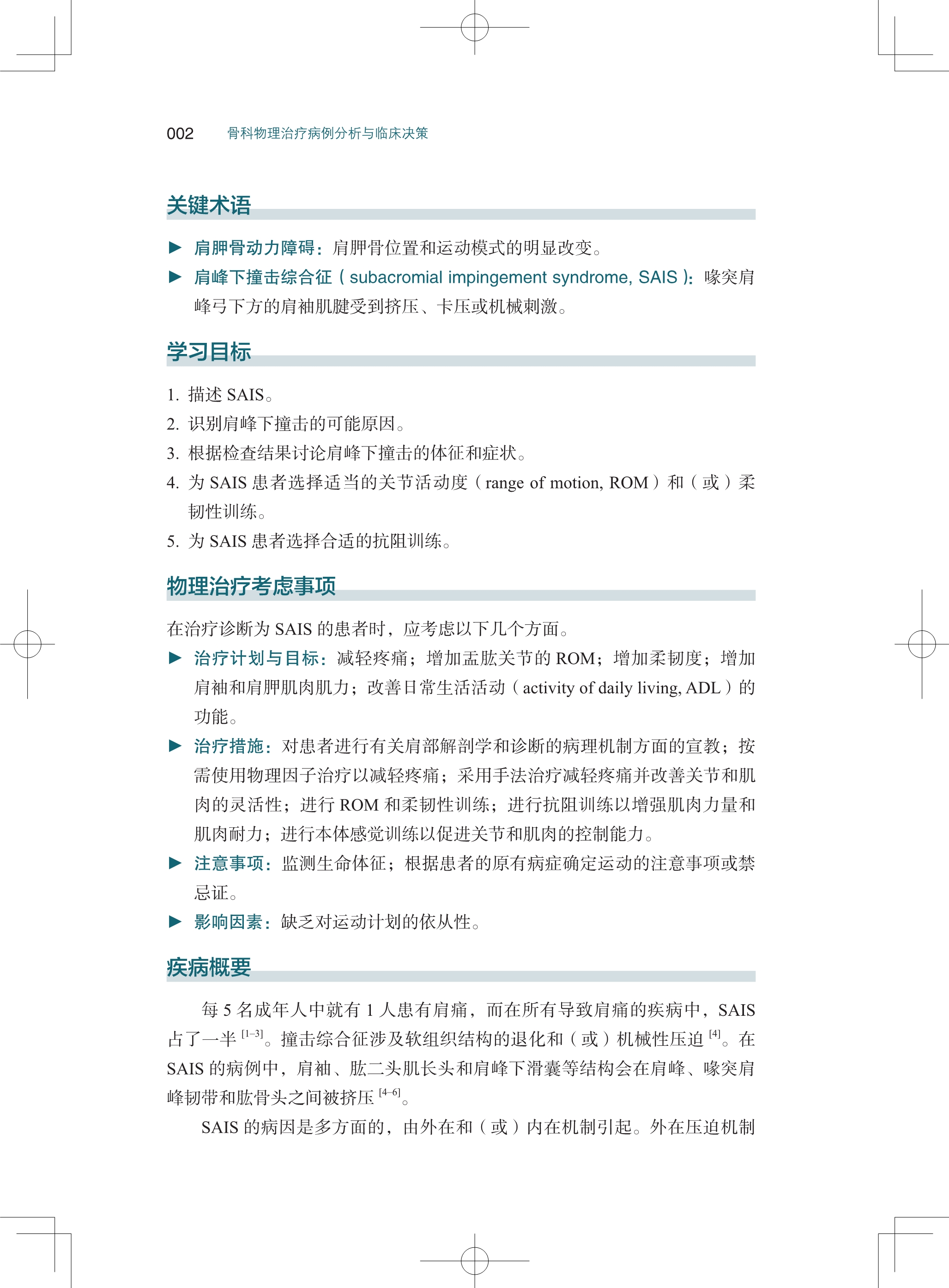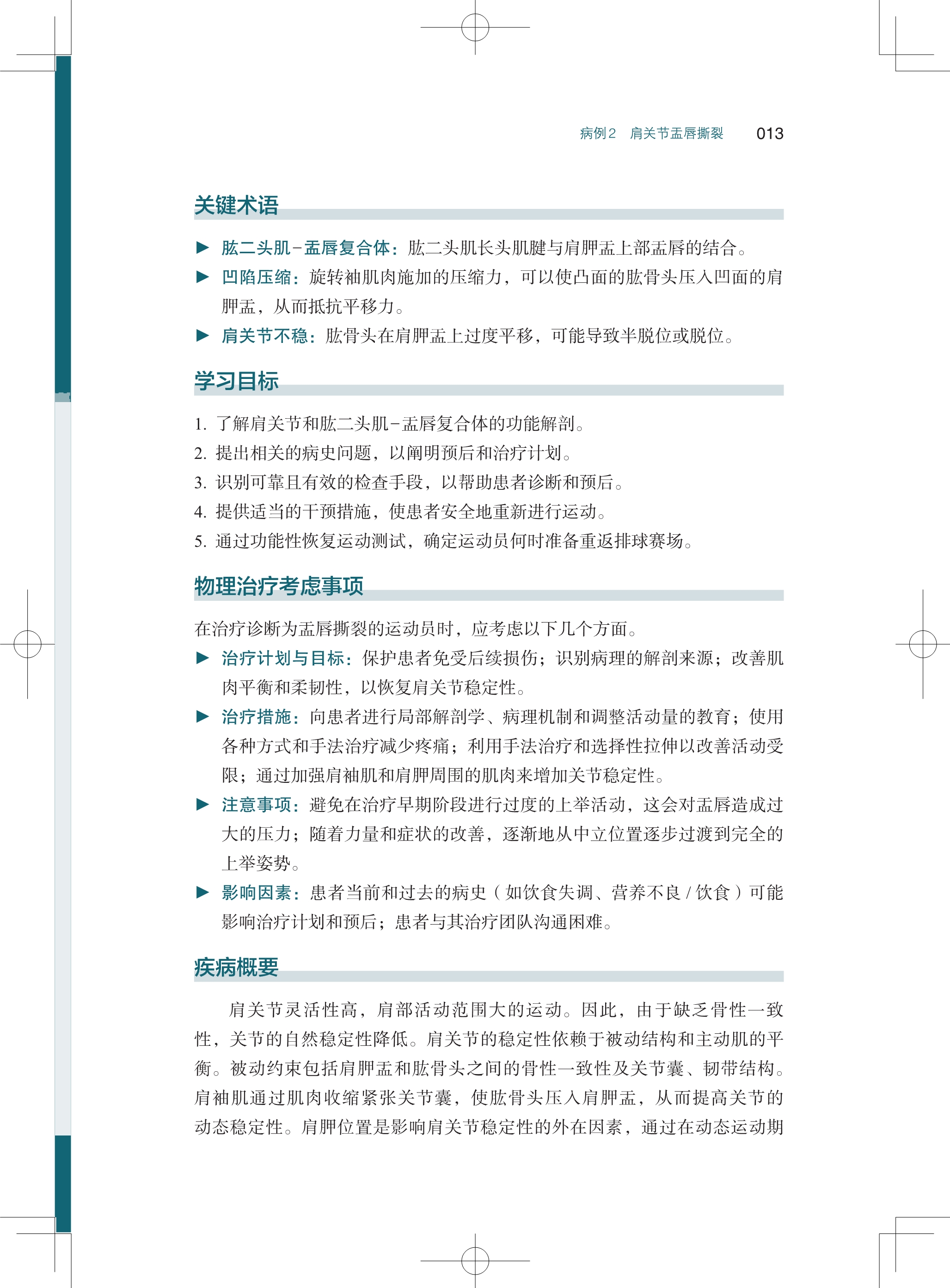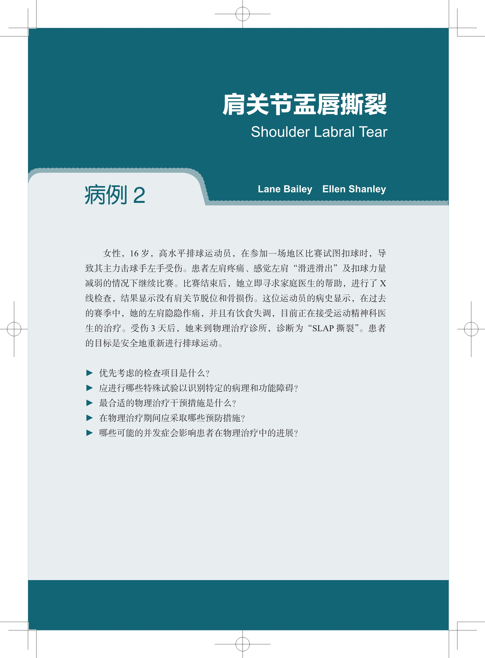 本书包含了 33 个关于常见骨骼肌肉疾病的病例:7个与上肢有关,8个与脊柱有关,18个与下肢有关。既结合过去10年中的新实践和证据,也对 版中的26个案例进行了更新。例如,使用诊断超声确认髌腱病(病例22)的诊断,以及利用干针疗法作为足跟痛的辅助治疗(病例33)。此外,6个新案例反映了物理治疗实践中的 技术和 新进展,包括使用血流限制训练治疗髌股疼痛(病例21),以及物理治疗师在初级护理中的介入(病例15)。希望本书能够激励物理治疗师和相关专业医学生保持学习热情、提升实践技能,并帮助改善患者的生活质量。