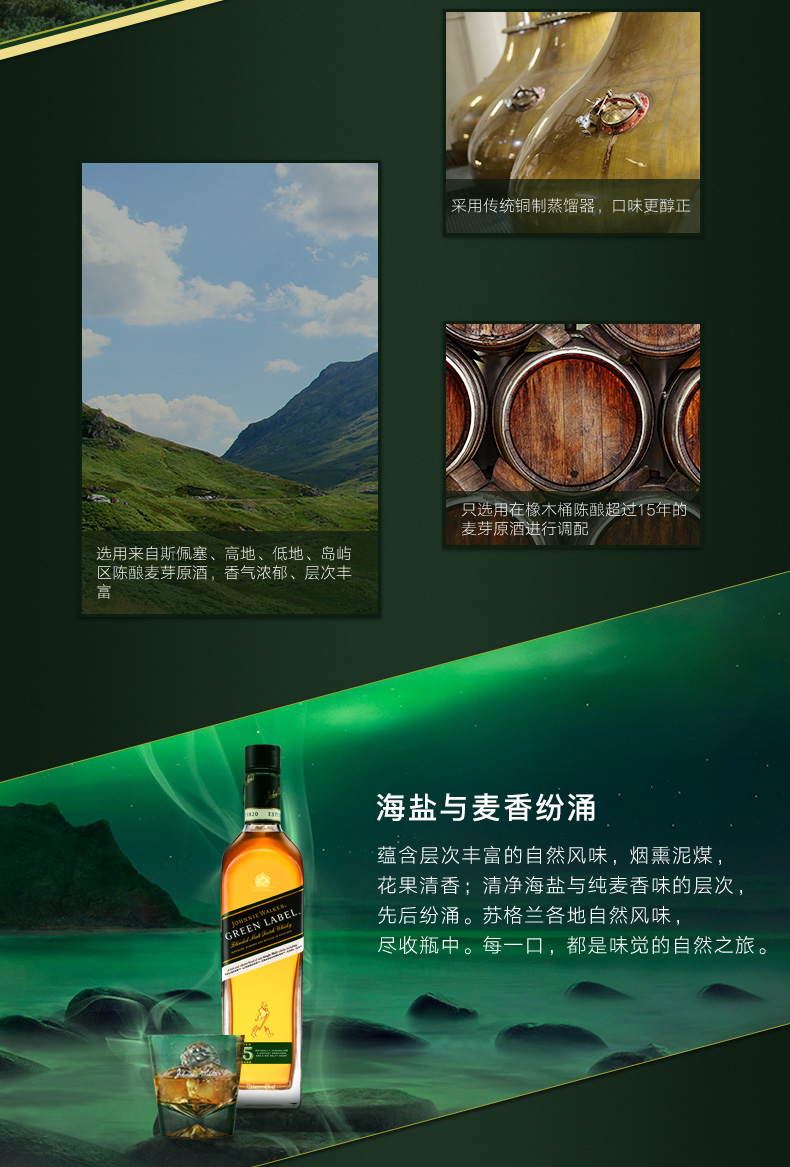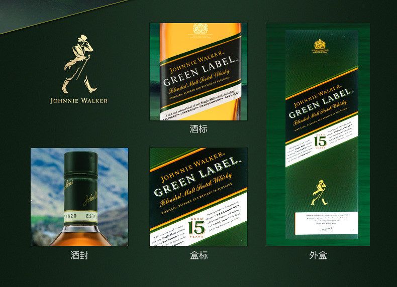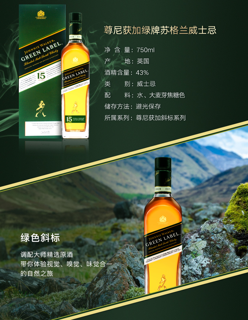 【行货】苏格兰尊尼获加 绿牌 调配威士忌750ml*1瓶