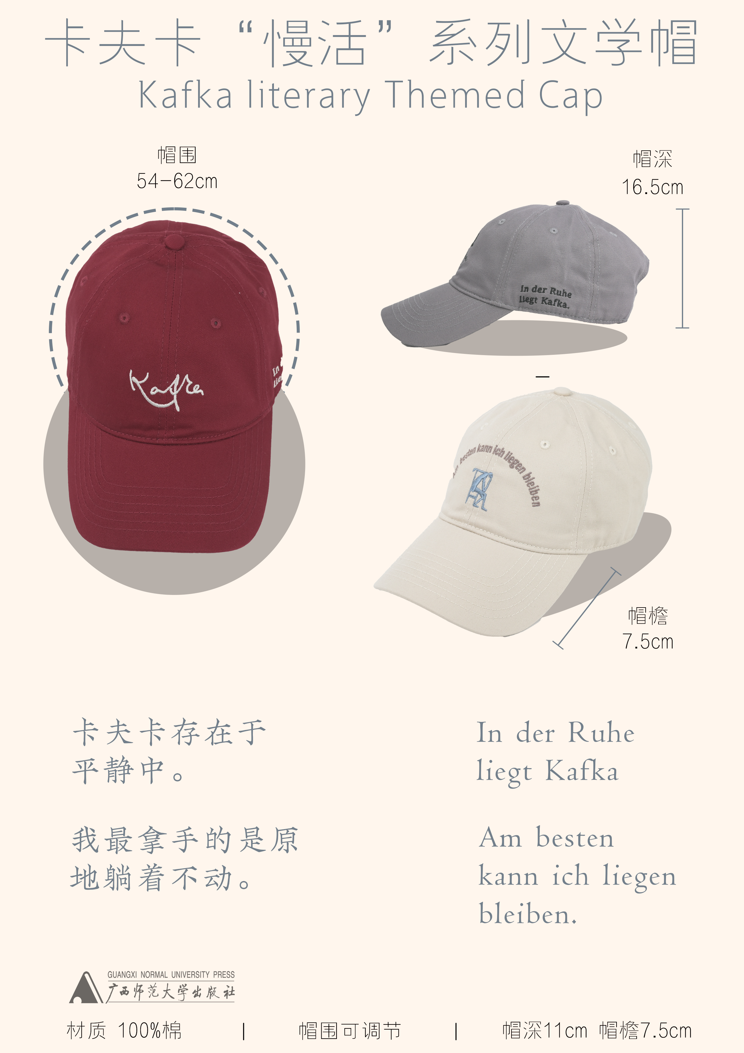 【现货 五色可选 】卡夫卡“慢活”系列棒球帽 藏蓝/灰/咖色/深红/米白帽围可调节 文创 穿搭 帽子 夏季 广西师范大学出版社