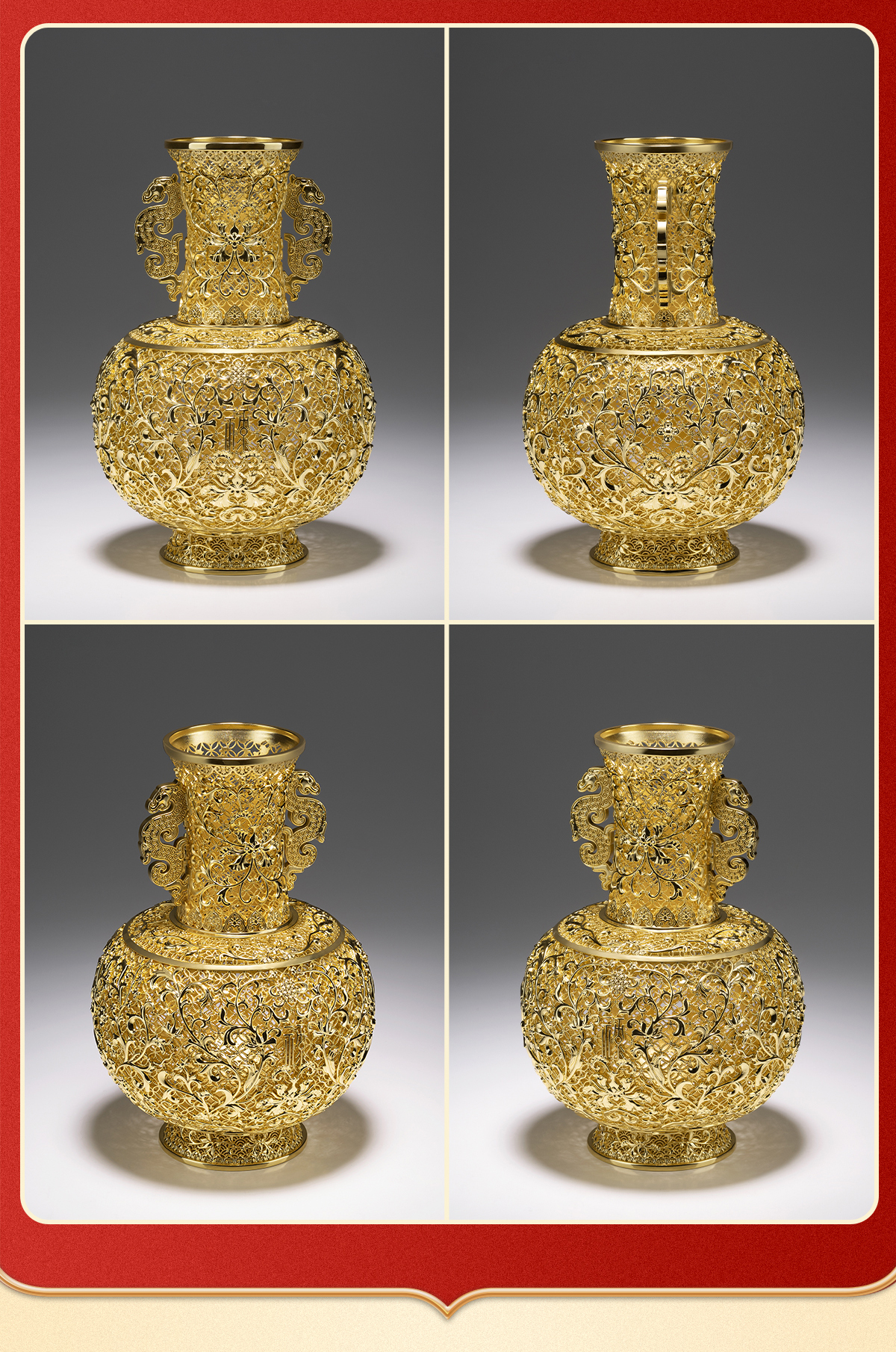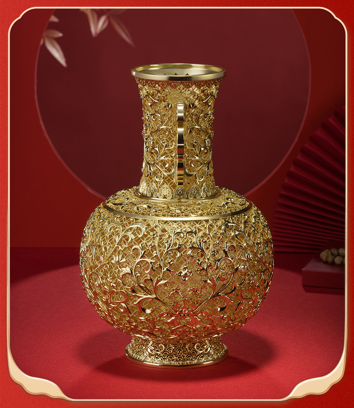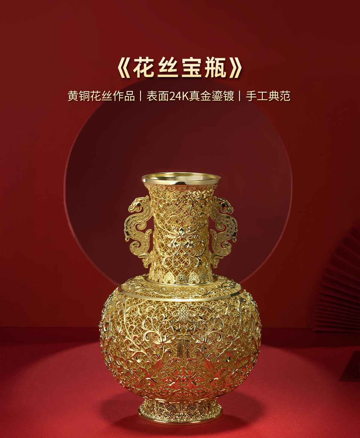 铜师傅《花丝宝瓶》客厅桌面铜花瓶摆件 家居装饰品 节日礼物