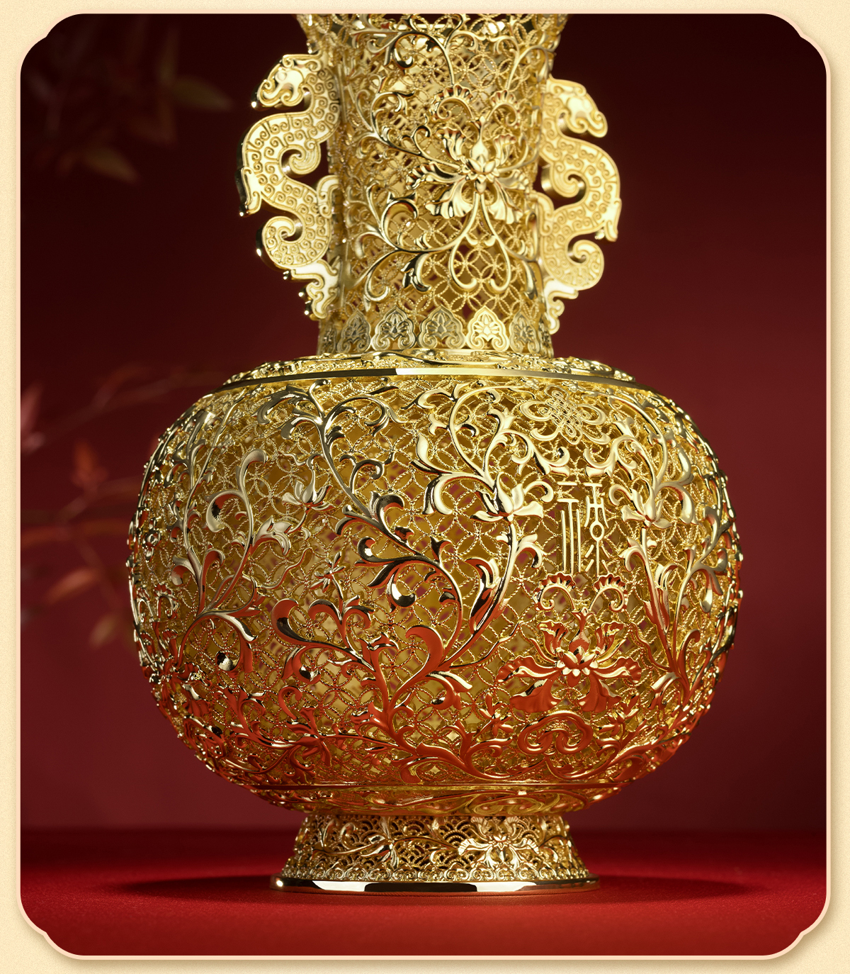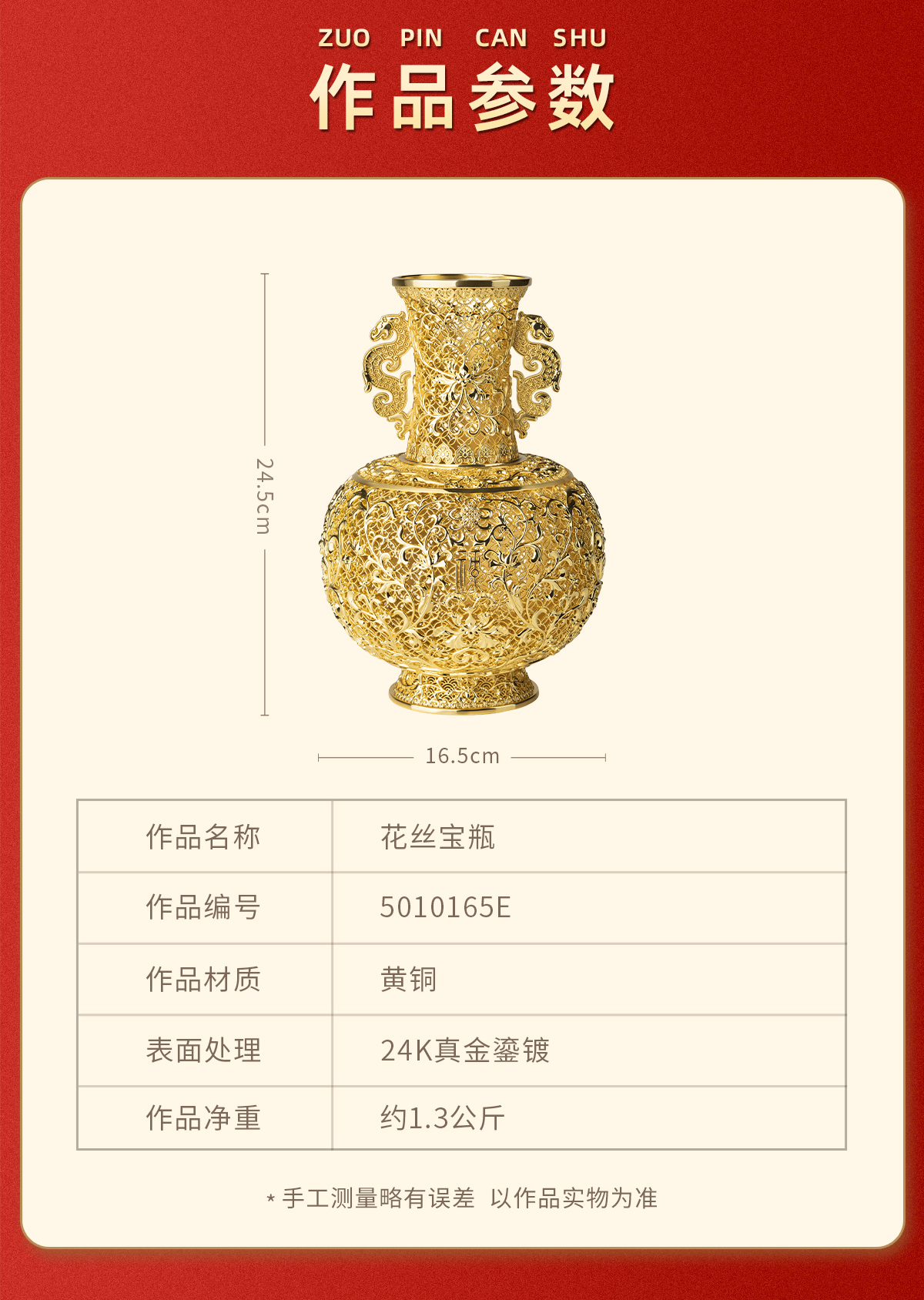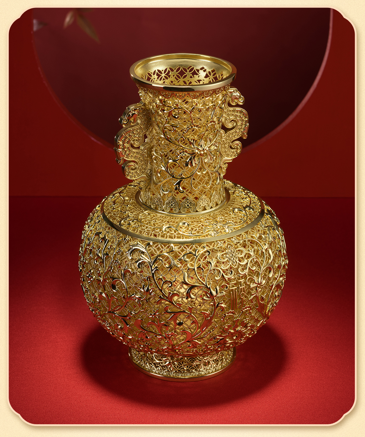 铜师傅《花丝宝瓶》客厅桌面铜花瓶摆件 家居装饰品 节日礼物