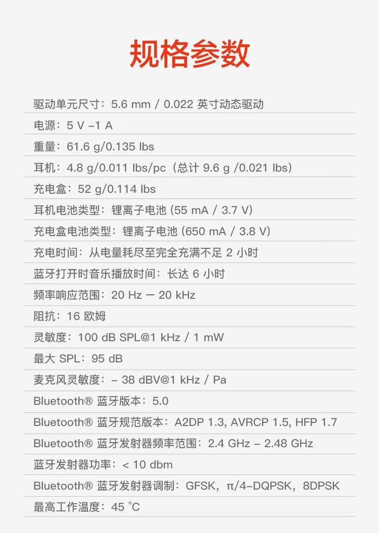 1根 Type-C USB充电线、1个充电盒、