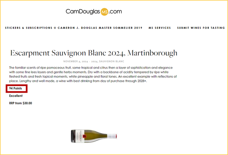全庄艏款长相思!双94高分第壹个年份!爱斯卡门长相思干白 Escarpment Sauvignon Blanc 2024