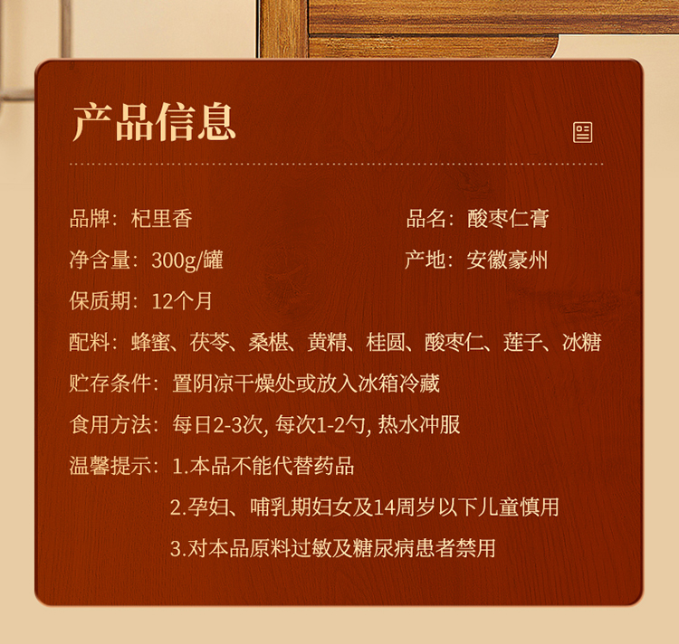 【冬季滋补】【杞里香酸枣仁膏300g】升级浓缩配方 多件更划算 遵循古法配比熬制 每天饮用