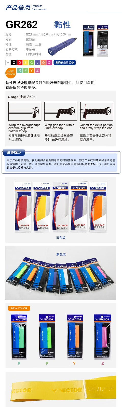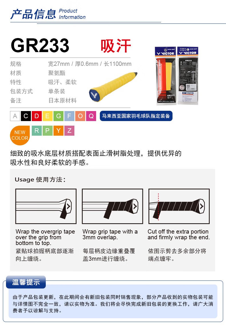 胜利威克多 手胶 GR233 (平面/单条装)