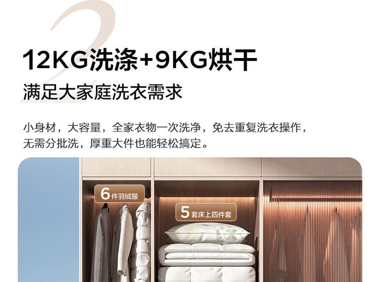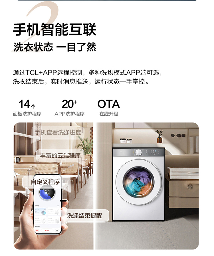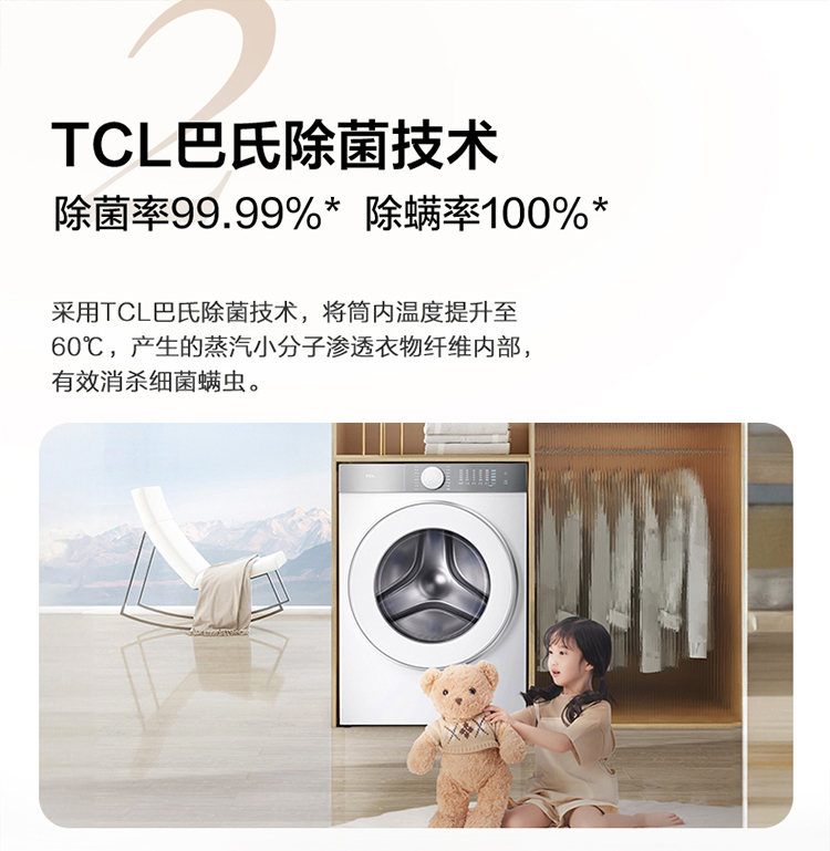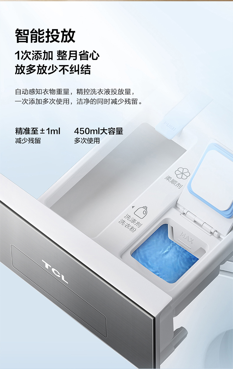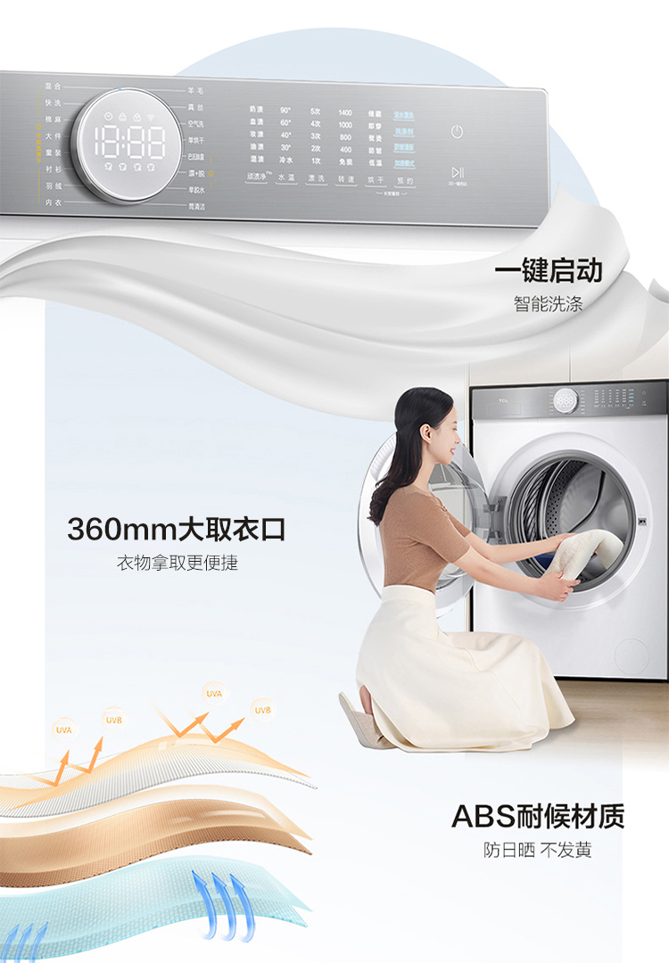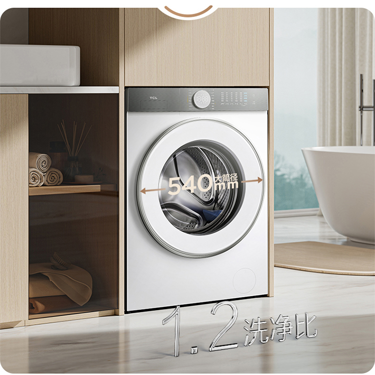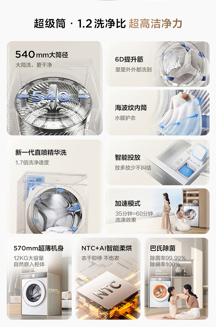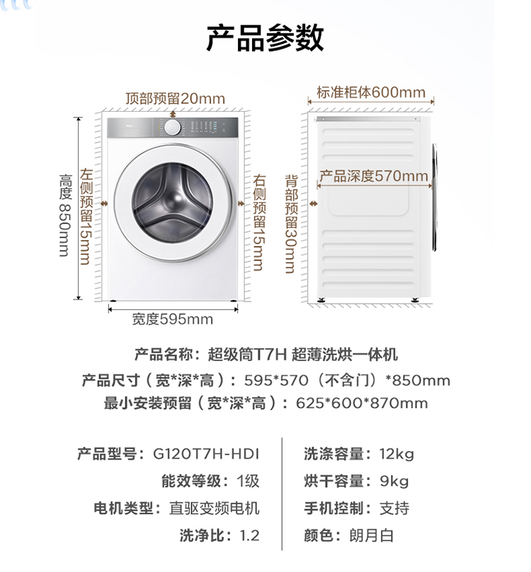 TCL 12公斤超级筒T7H超薄洗烘一体滚筒洗衣机 1.2洗净比 精华洗 智能投放 G120T7H-HDI