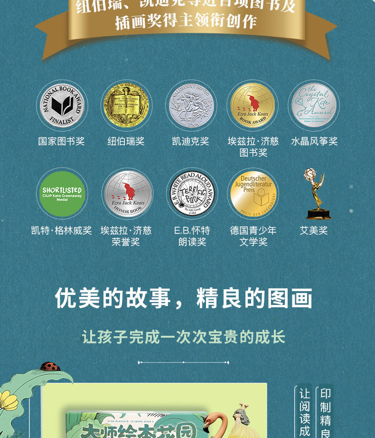 《大师绘本花园》这套书由获得纽伯瑞、凯迪克等100项童书大奖的绘本作者领衔创作;它包含15个儿童成长主题:自我、社交、友谊、勇气、分享、幸福感等等,15个不同的故事都在诠释一个主旨:透过好的绘本,用至真至美来喂养孩子,丰盈他们稚嫩的心灵。